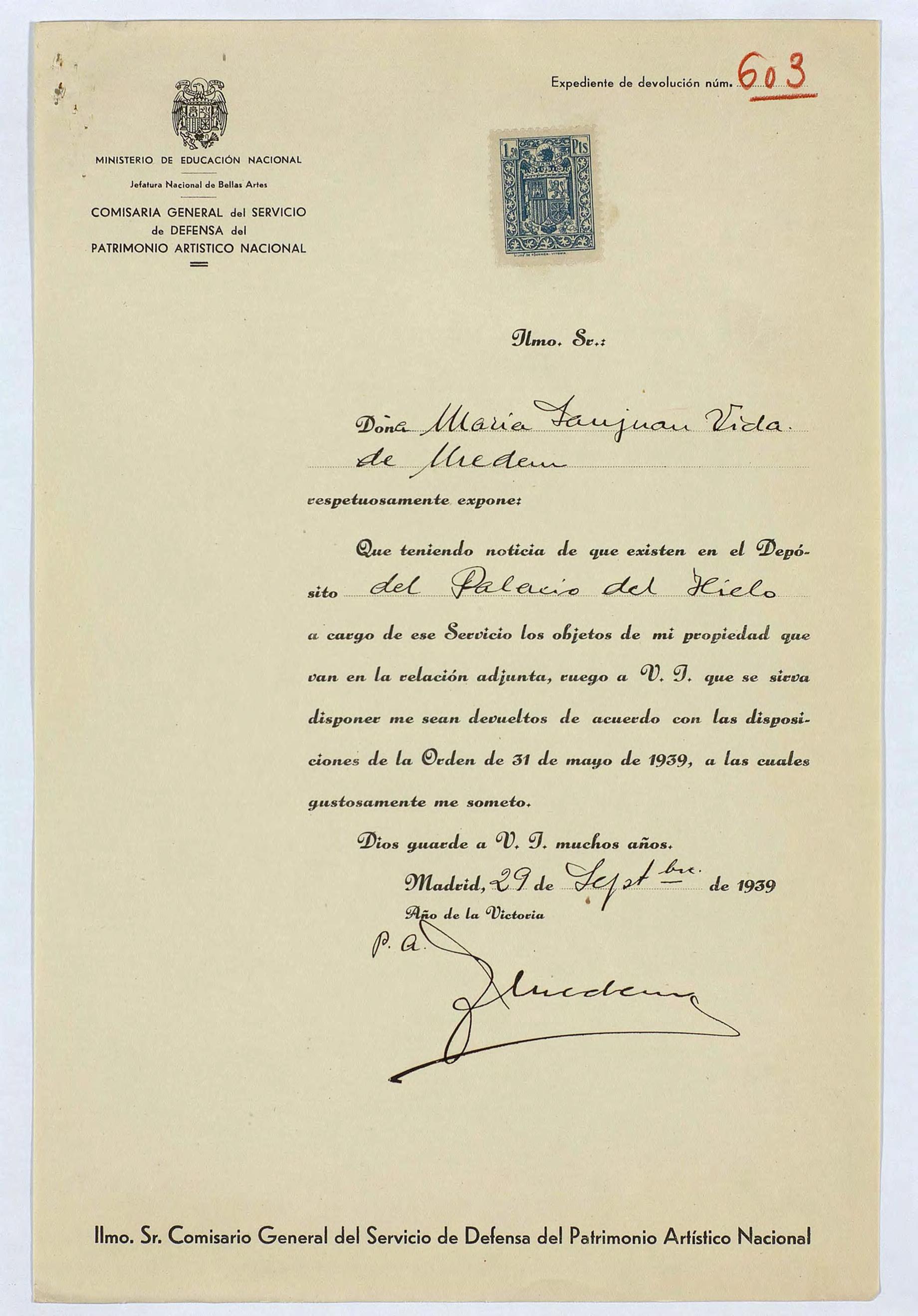 Expediente de devolución de María Sanjuan, viuda de Medem