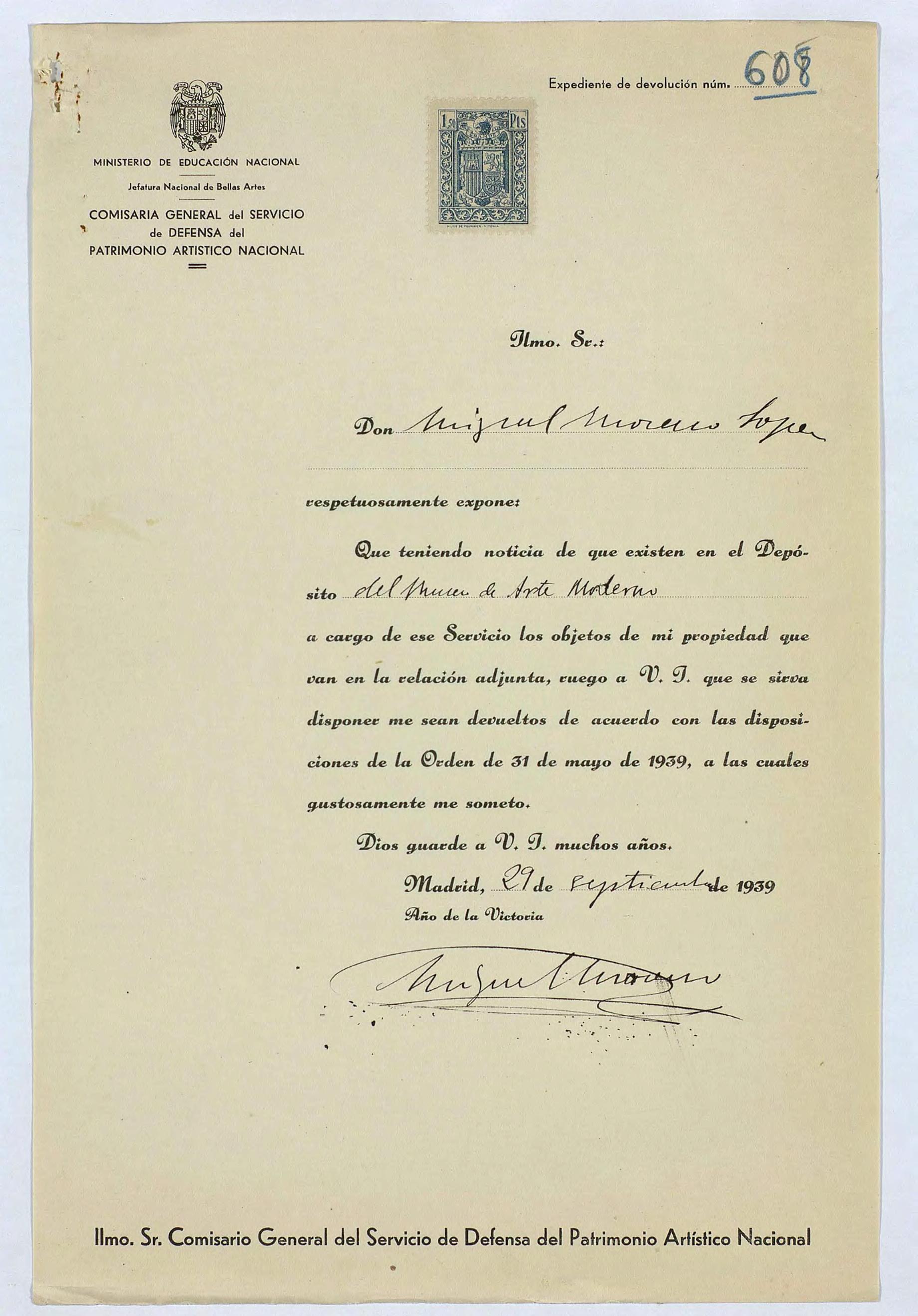 Expedientes de devolución de obras de arte