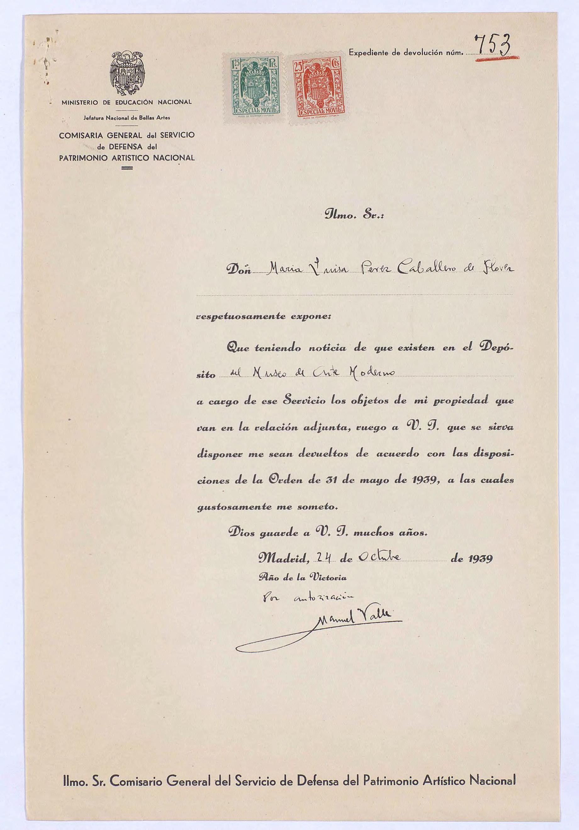 Expediente de devolución de María Luisa Pérez Caballero de Florez