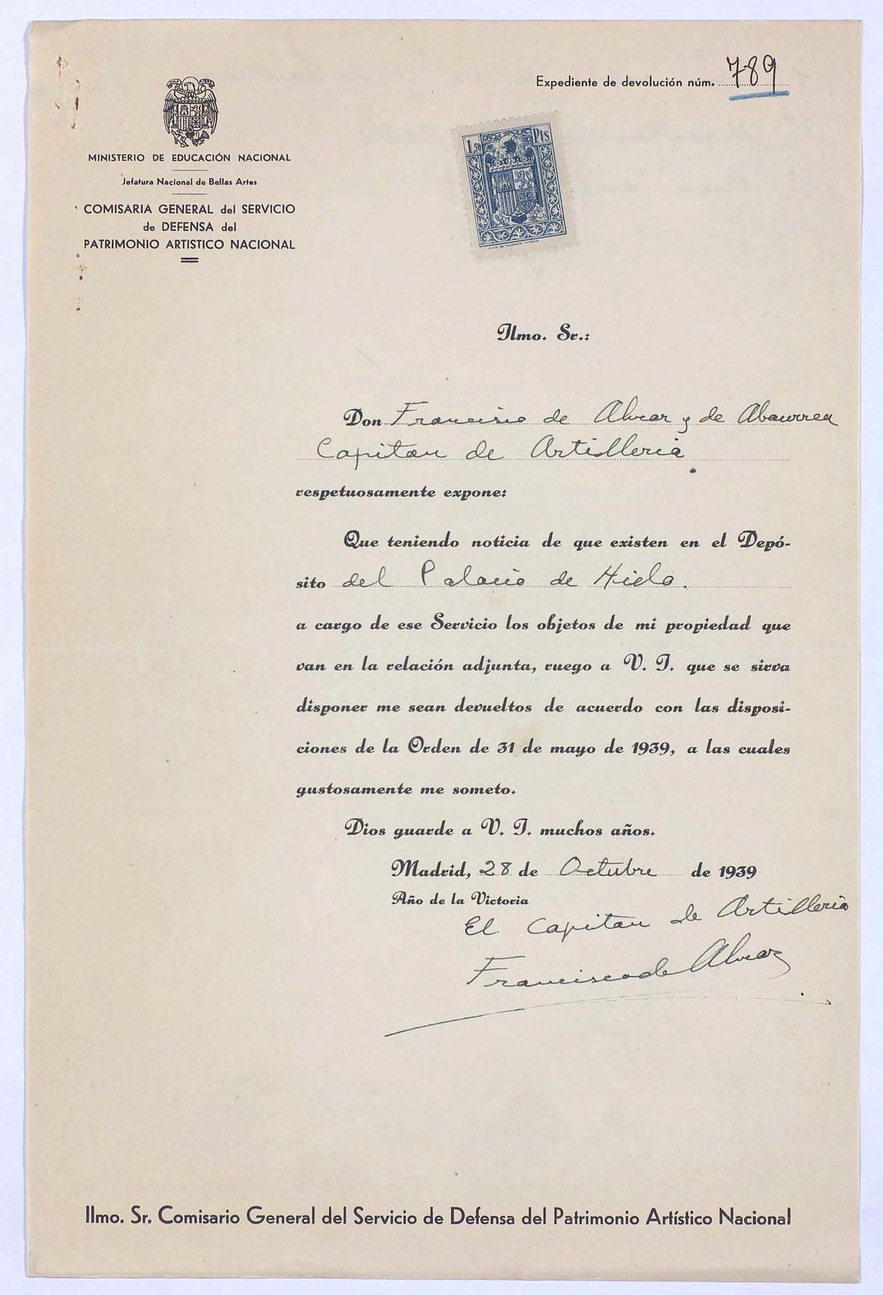 Expediente de devolución de Francisco de Alvear y Abaurrea