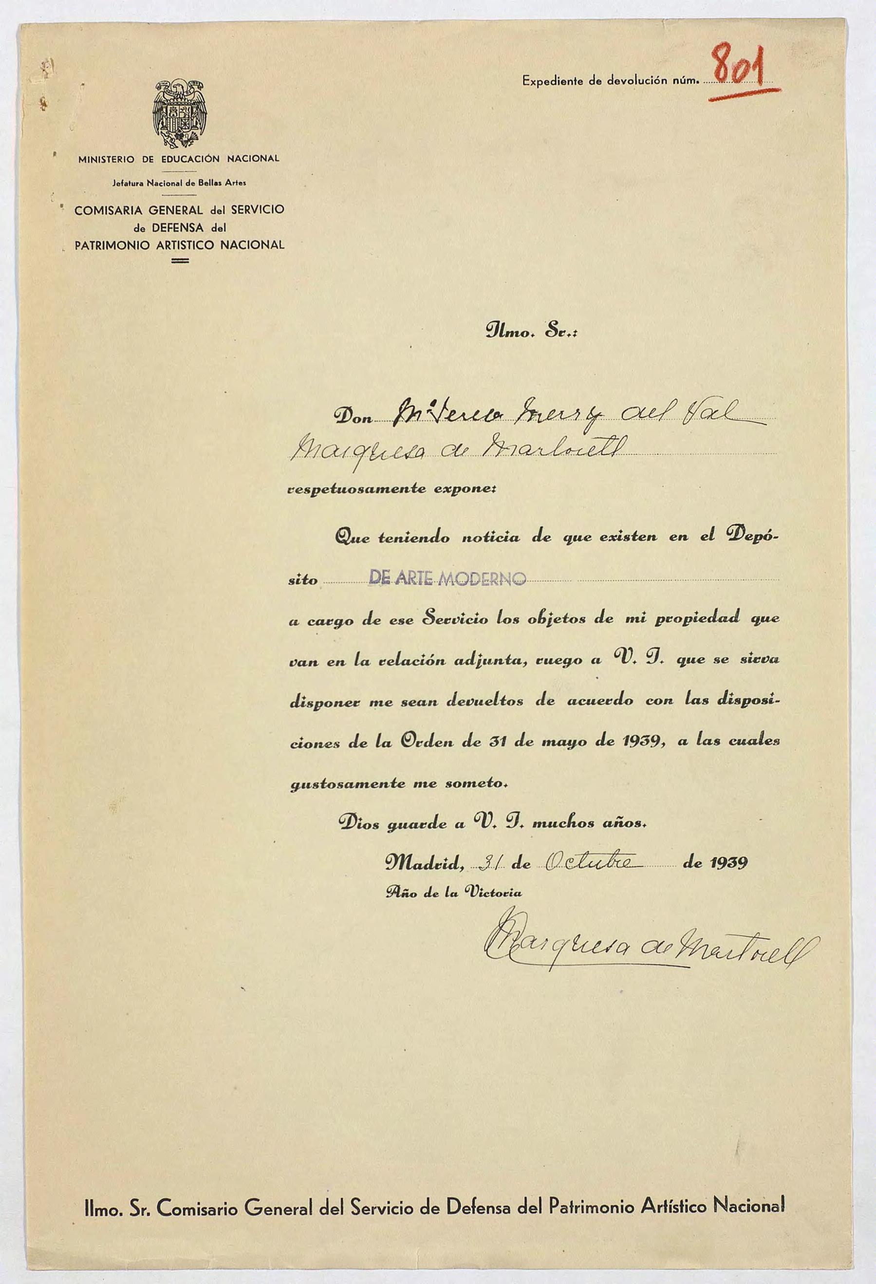 Expediente de devolución de María Teresa Merry del Val, marquesa de Martorell