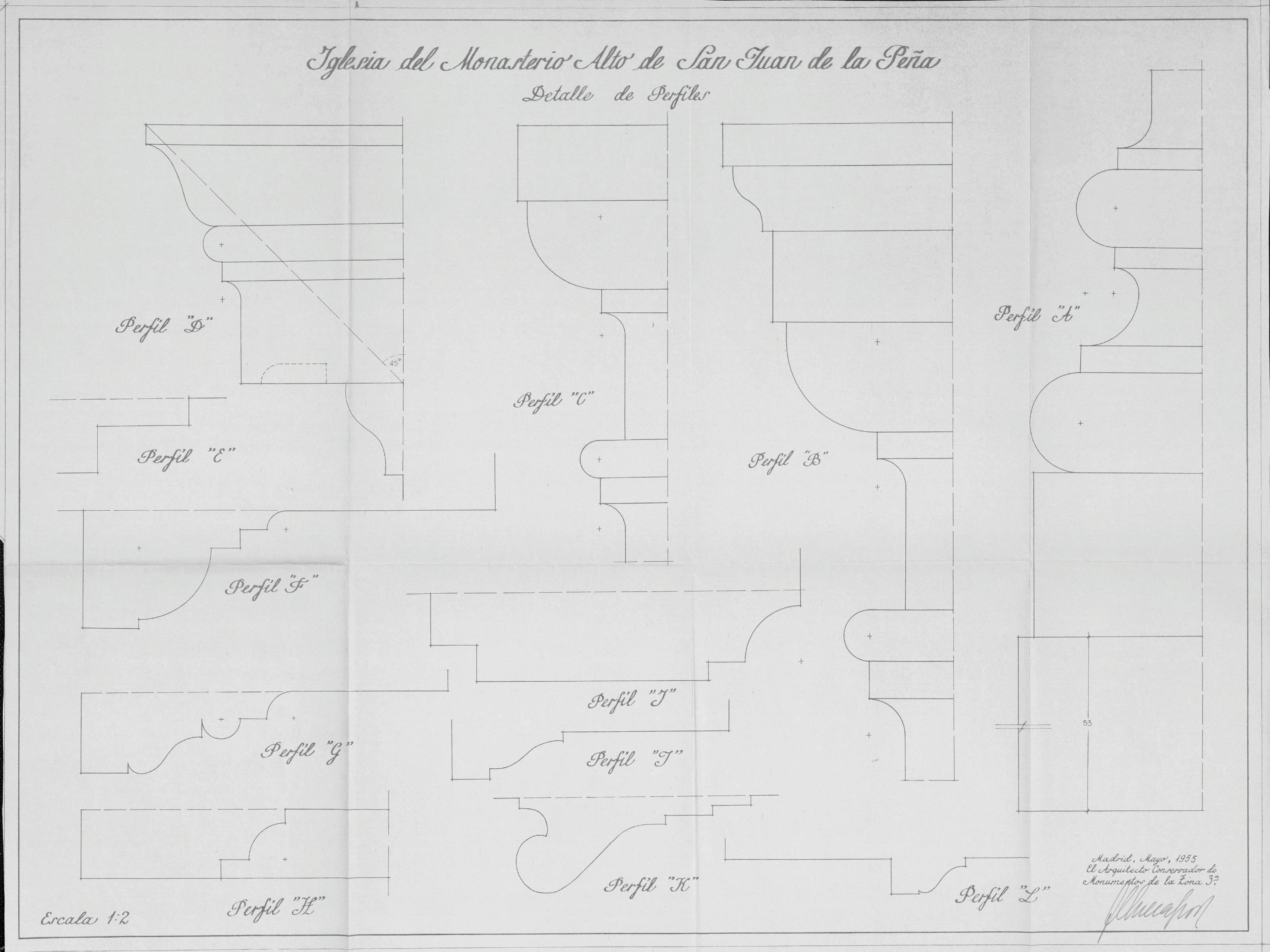 Iglesia del Monasterio Alto de San Juan de la Peña: Plano de detalles de perfiles