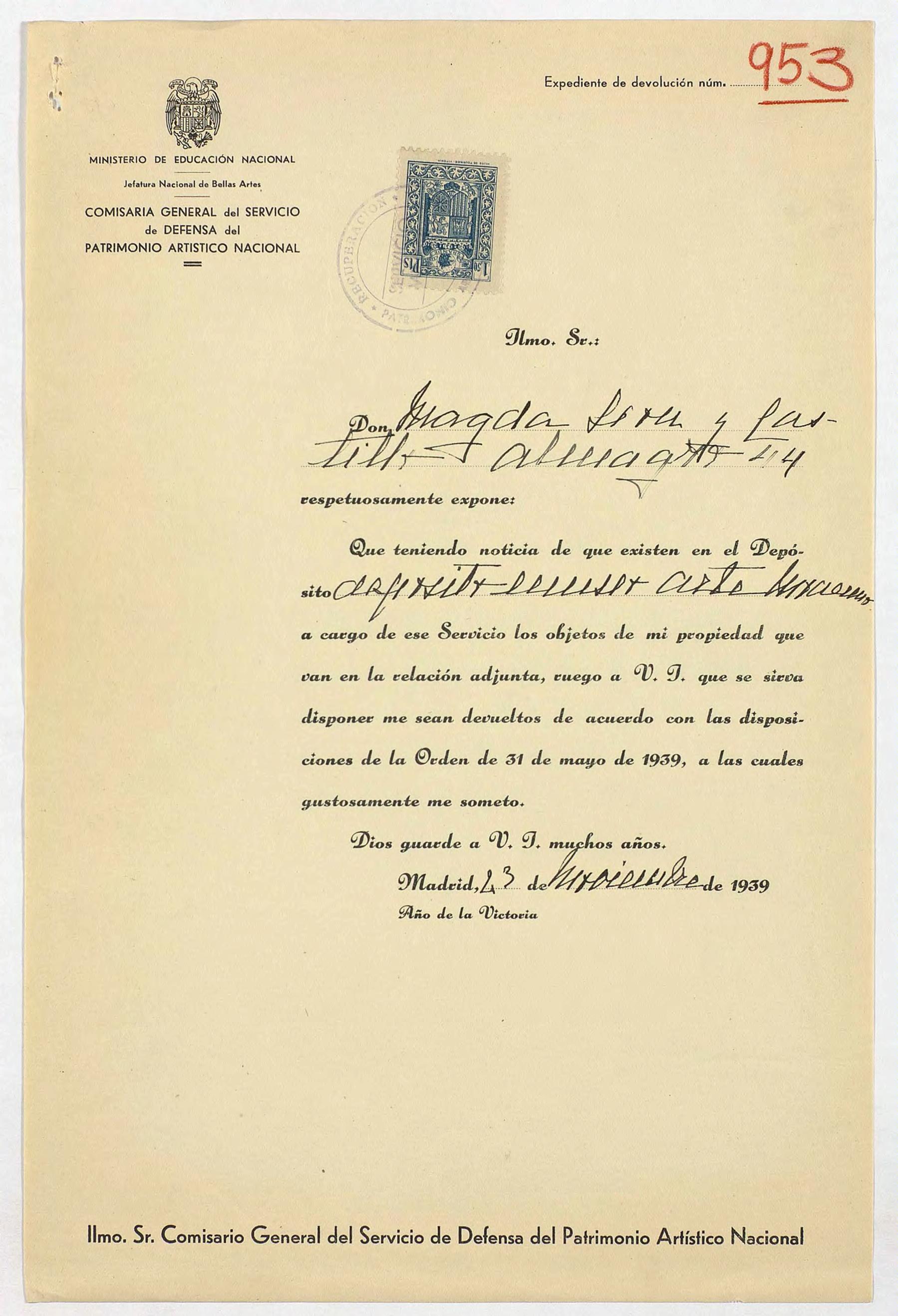 Expedientes de devolución de obras de arte