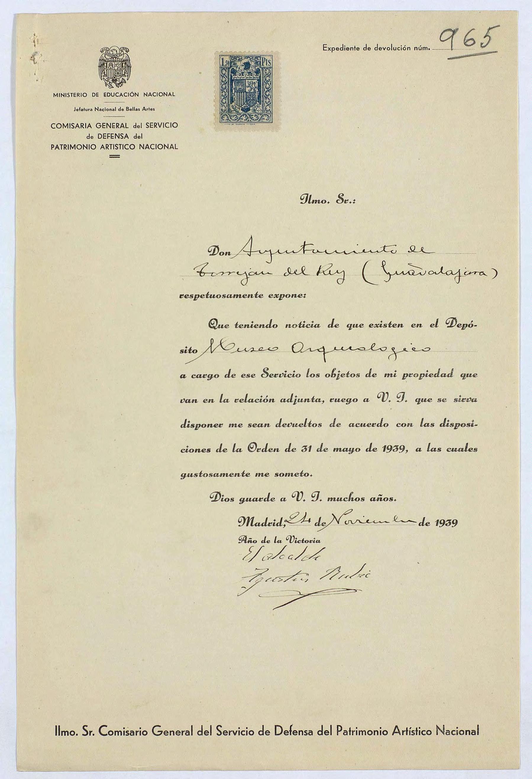Expediente de devolución del Ayuntamiento de Torrejón del Rey (Guadalajara)