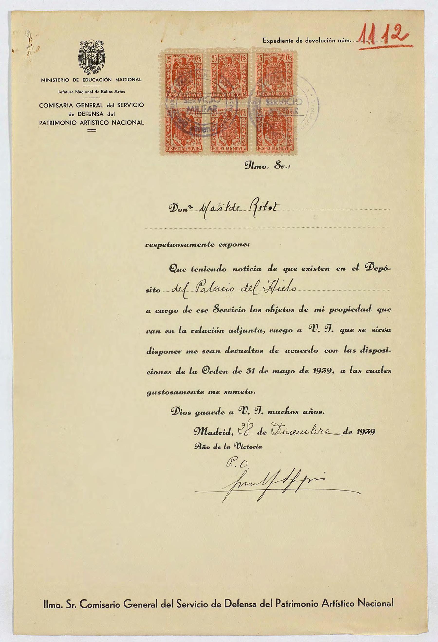 Expedientes de devolución de obras de arte