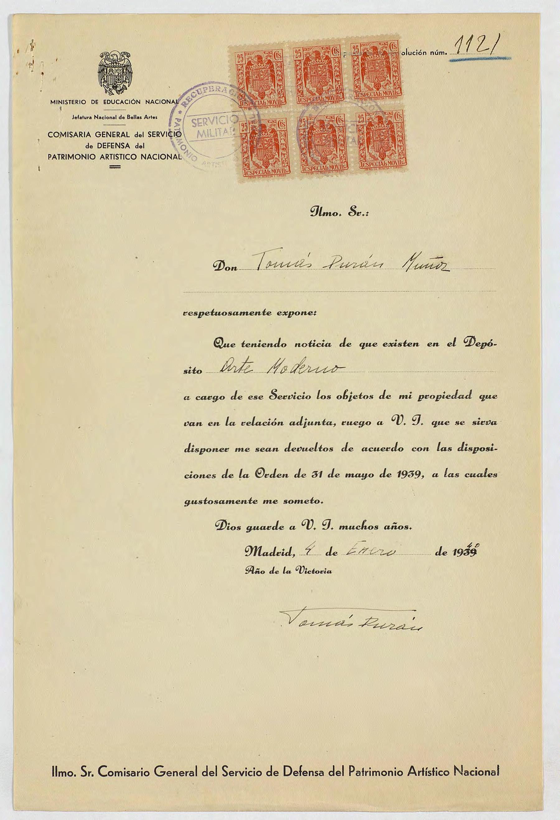 Expedientes de devolución de obras de arte
