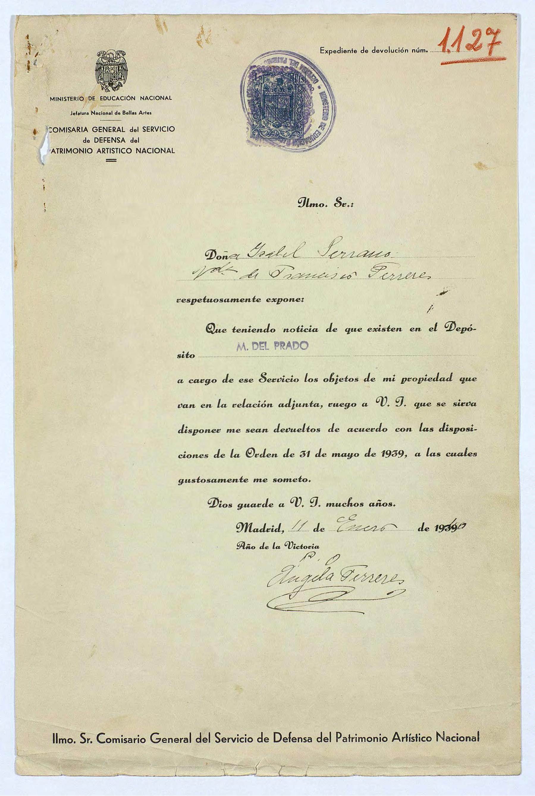 Expediente de devolución de Isabel Serrano, viuda de Ferreres