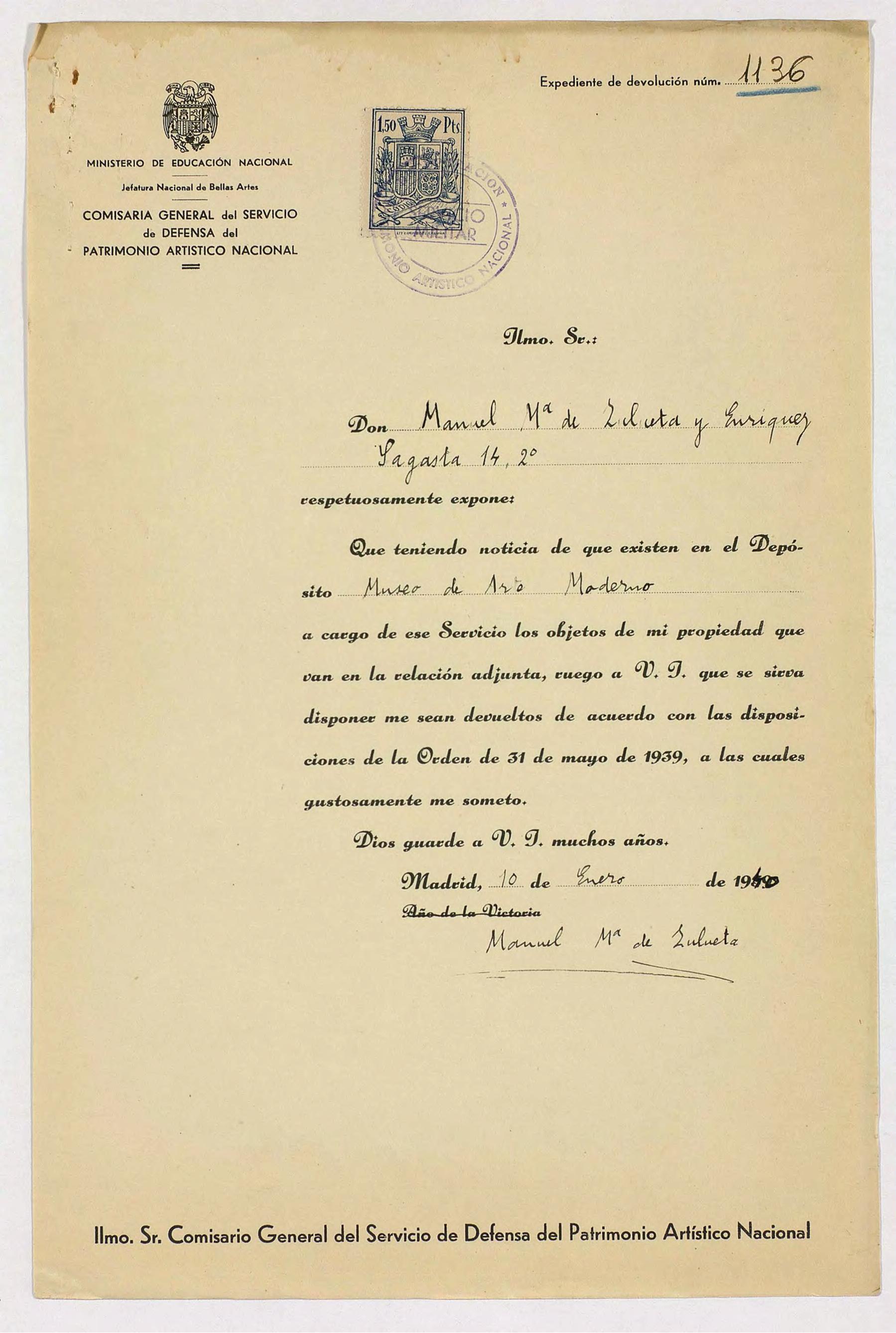 Expediente de devolución de Manuel María de Zulueta y Enríquez