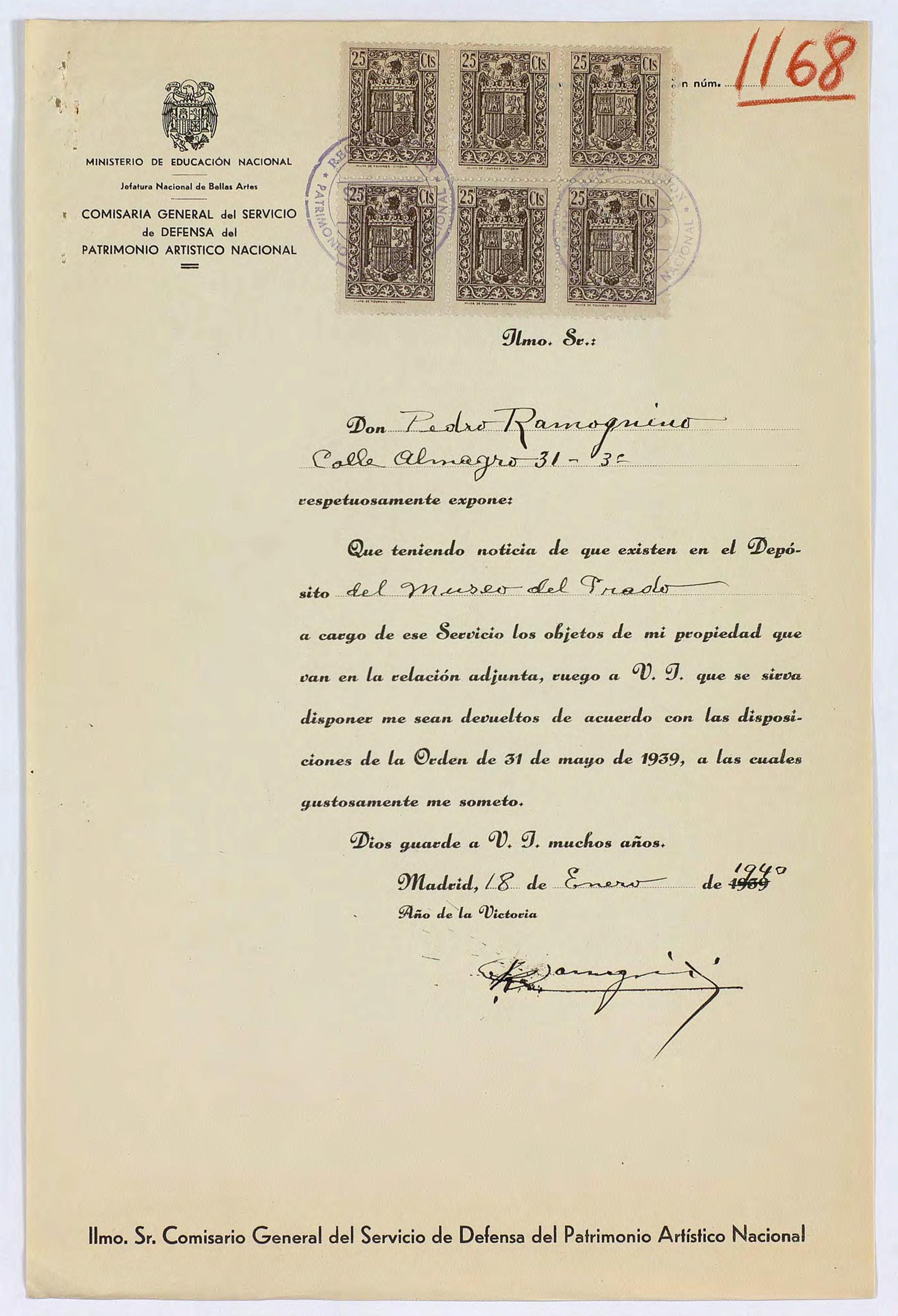 Expediente de devolución de Pedro Ramognino