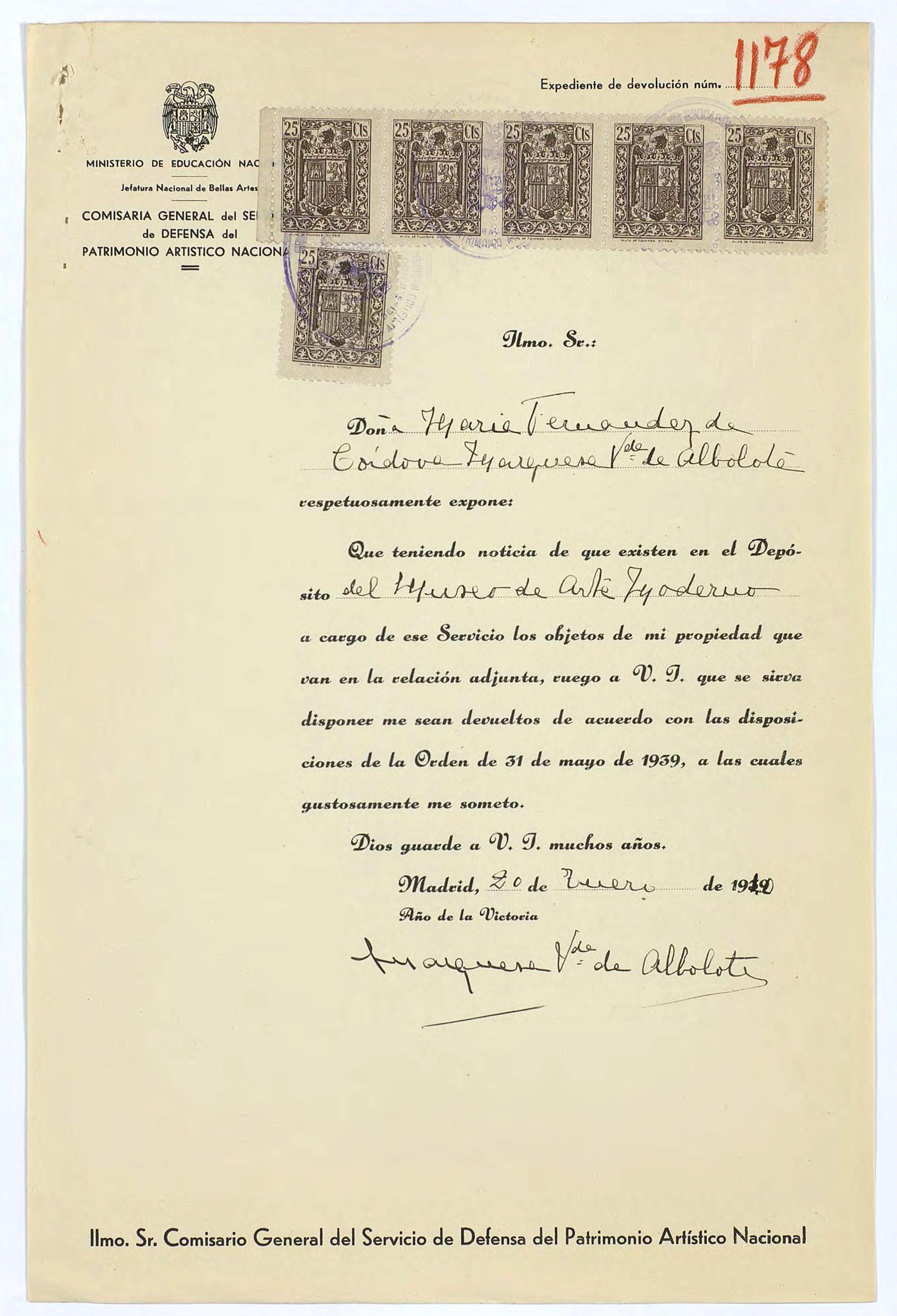 Expediente de devolución de María Fernández de Córdova, marquesa viuda de Albolote