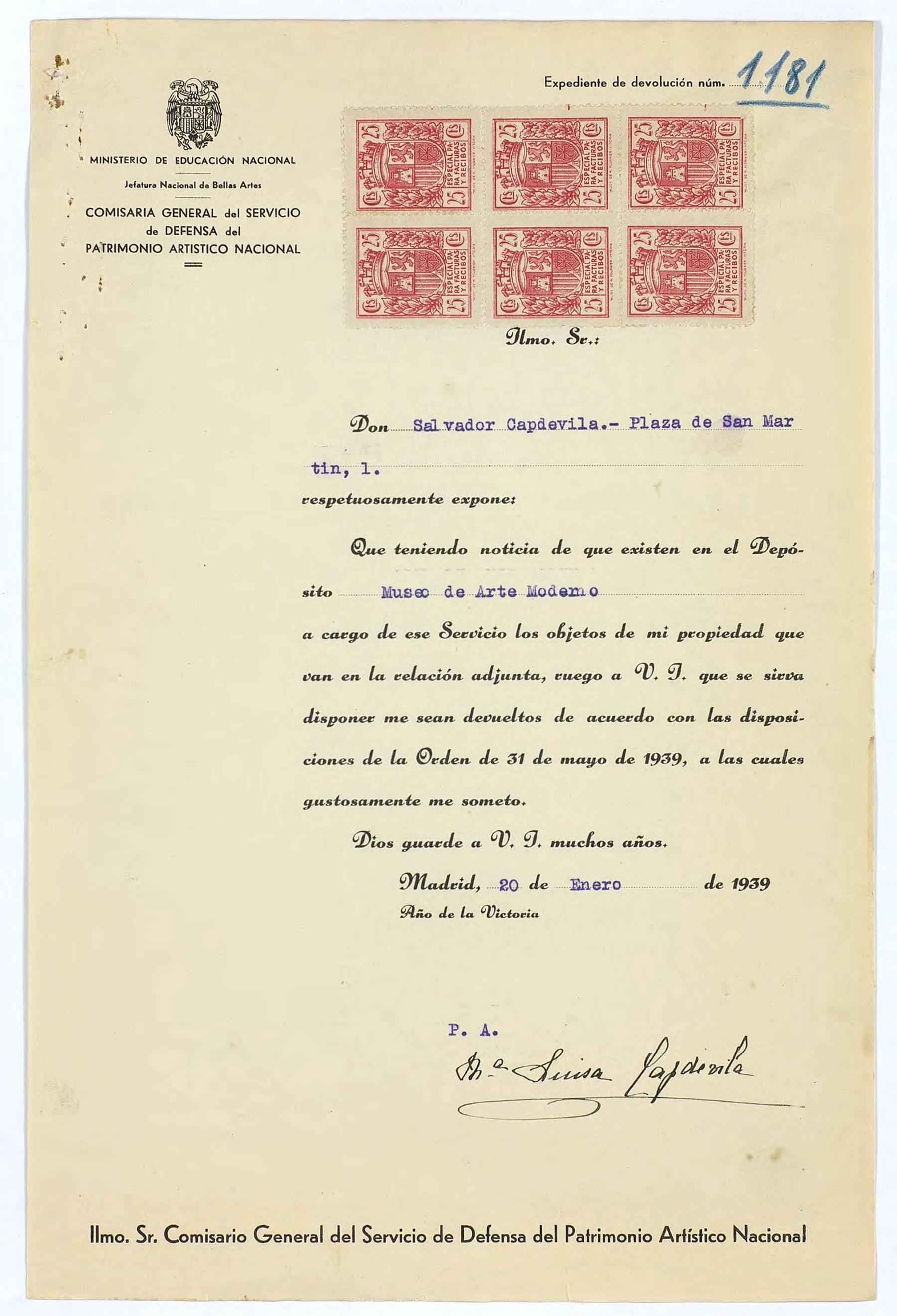 Expediente de devolución de Salvador Capdevila