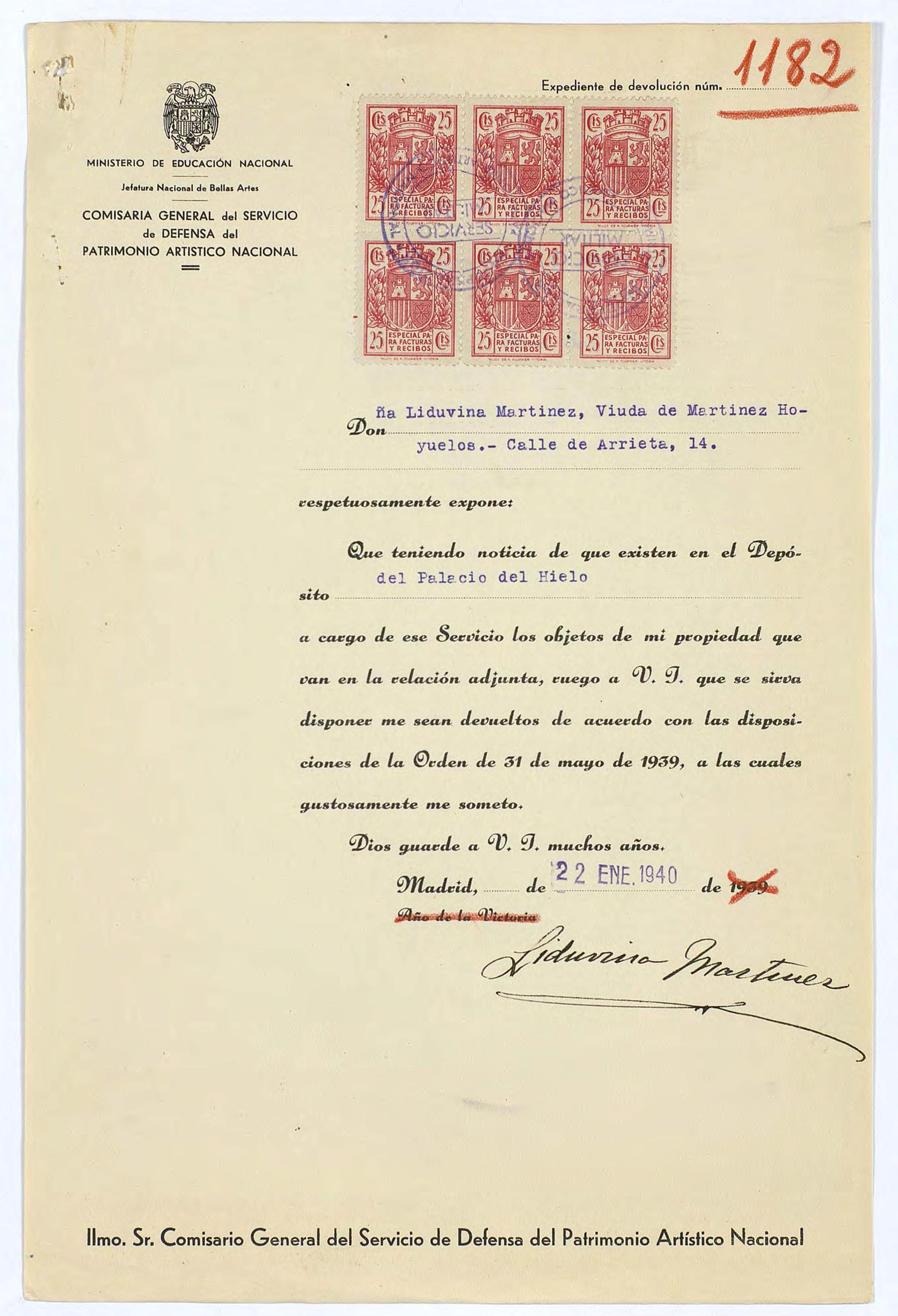 Expediente de devolución de Liduvina Martínez, viuda de Martínez Hoyuelos