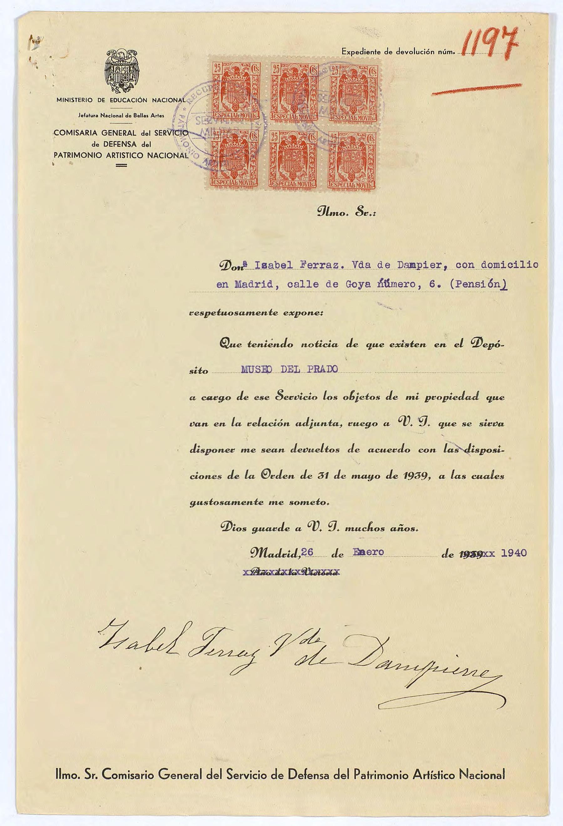 Expediente de devolución de Isabel Ferraz, viuda de Dampierre