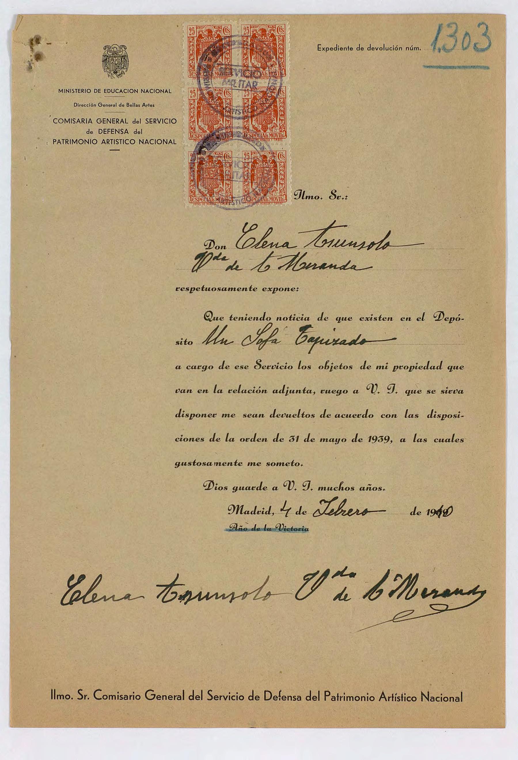 Expediente de devolución de Elena Asunsolo, viuda de Álvarez Miranda