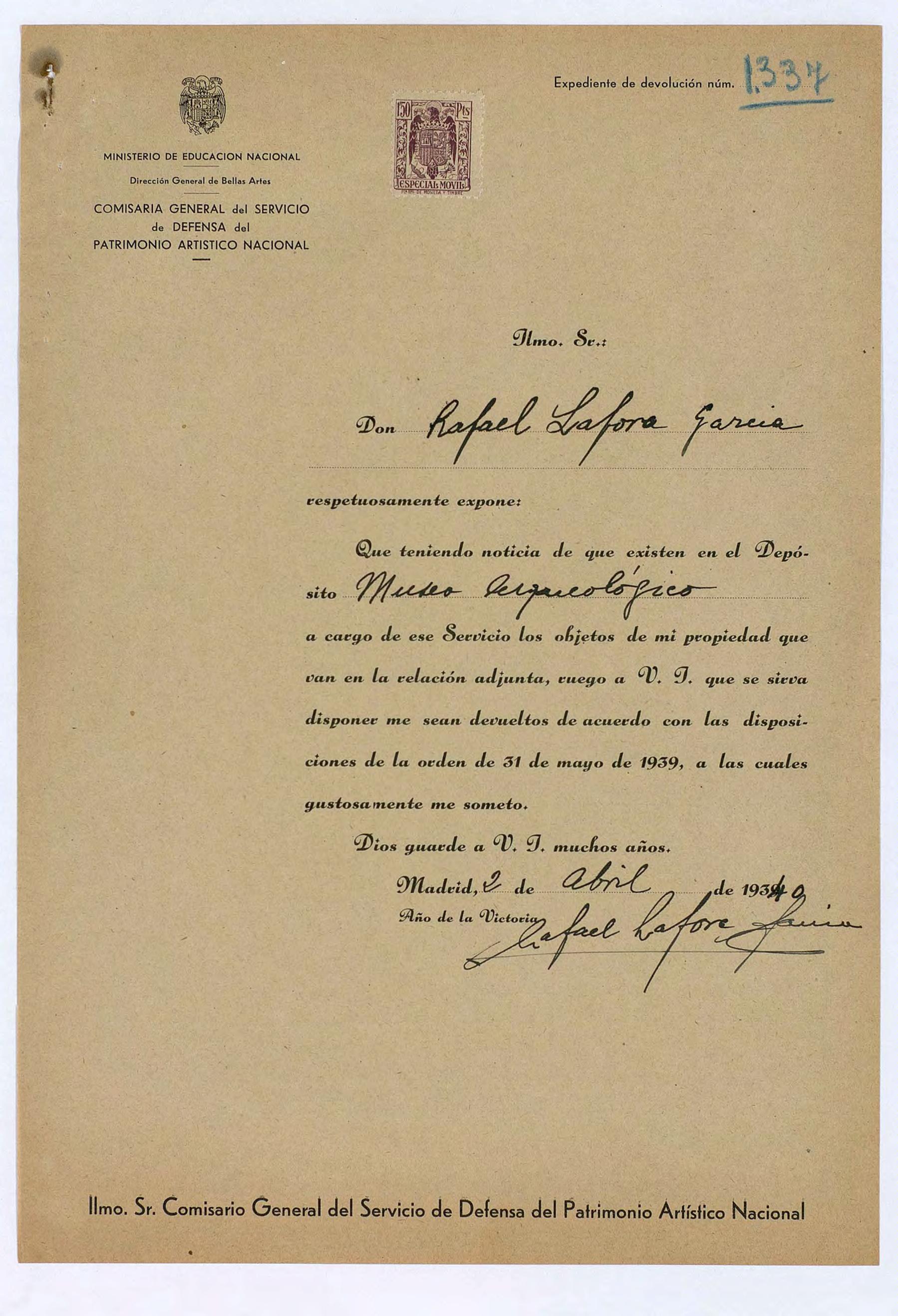 Expediente de devolución de Rafael Lafora García