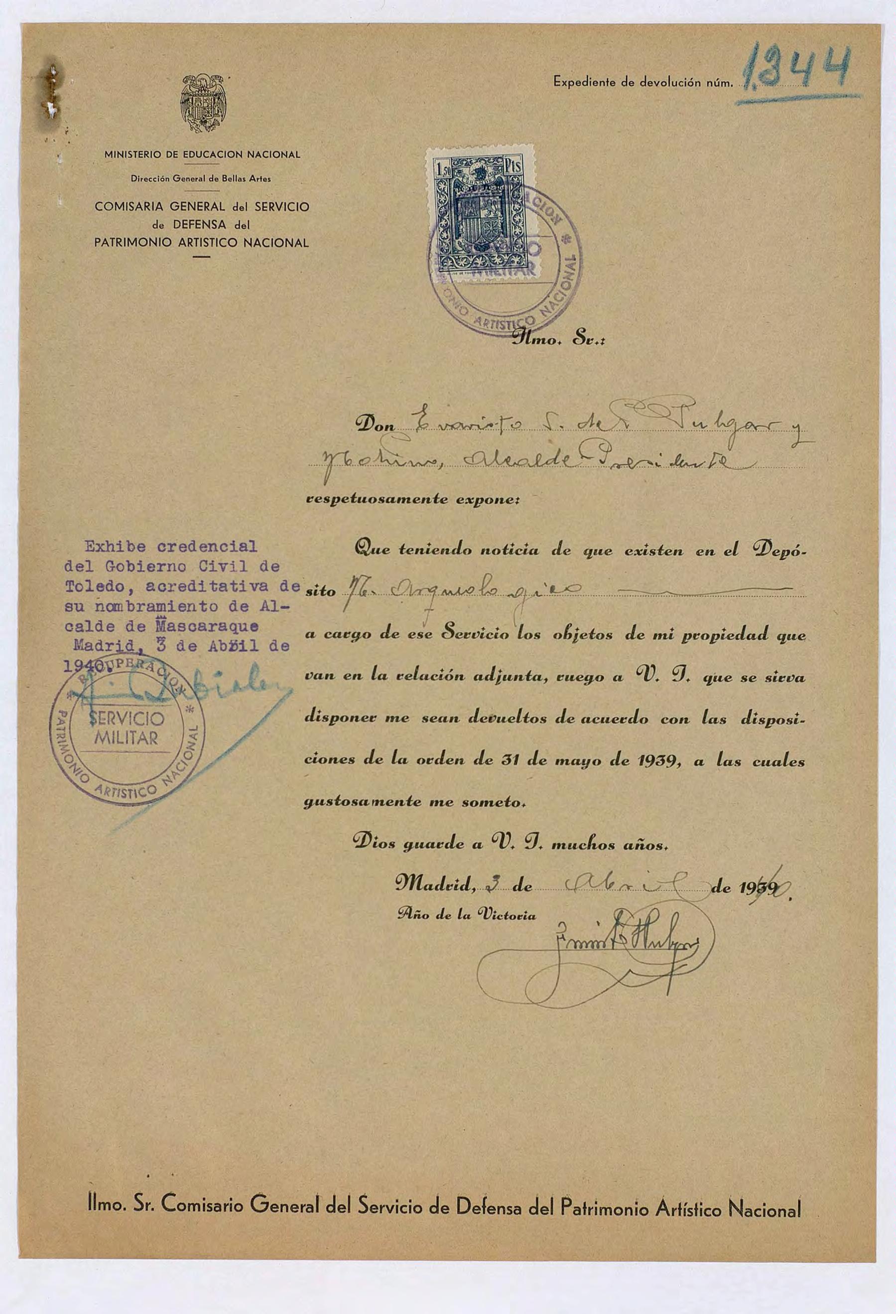 Expediente de devolución del Ayuntamiento de Mascaraque (Toledo)