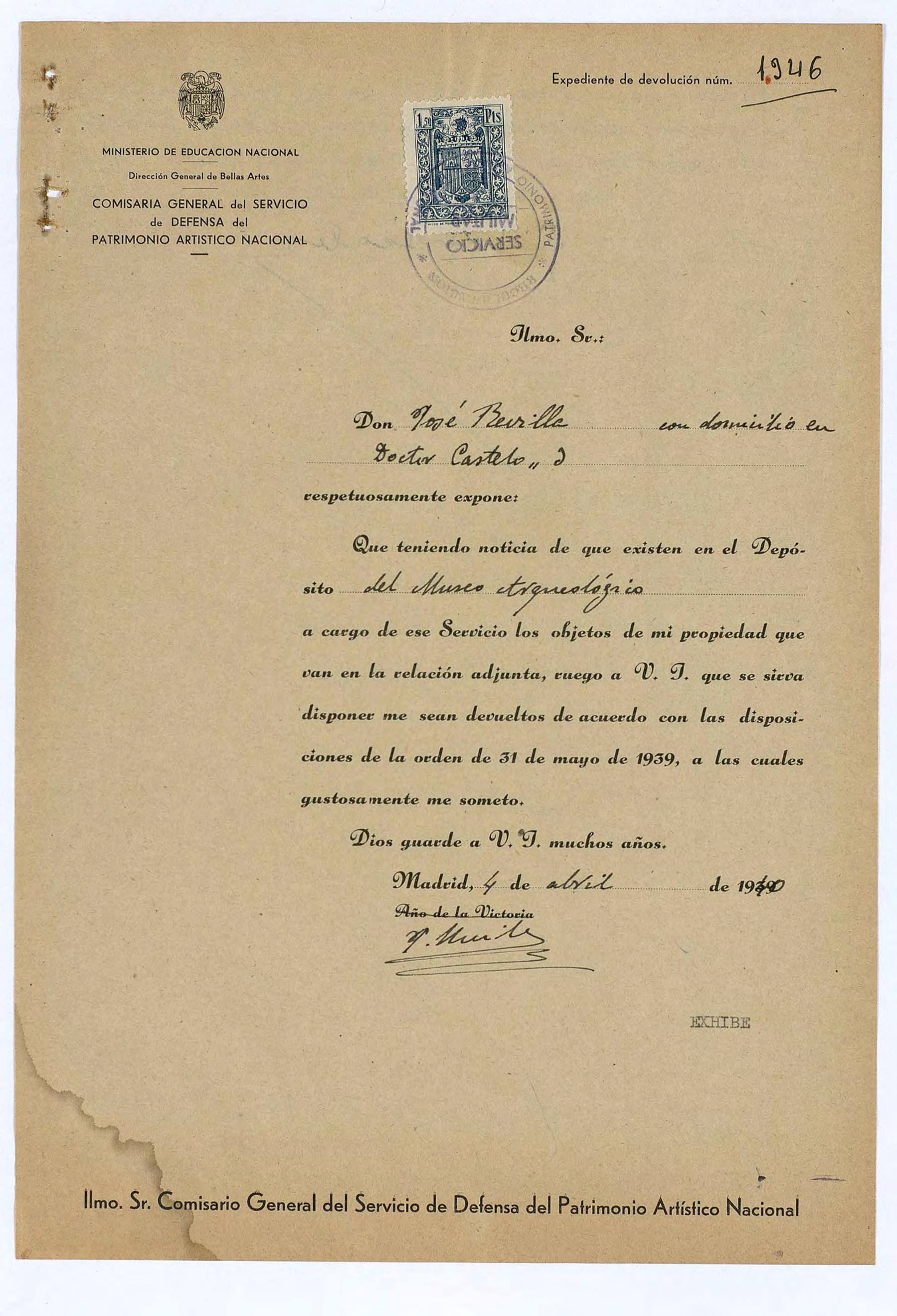 Expediente de devolución de José Revilla