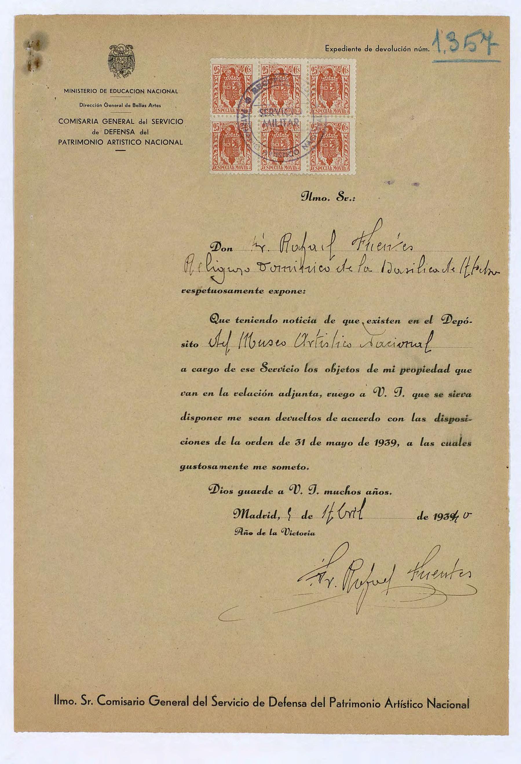 Expediente de devolución de los Padres Dominicos de la Basílica de Atocha de Madrid