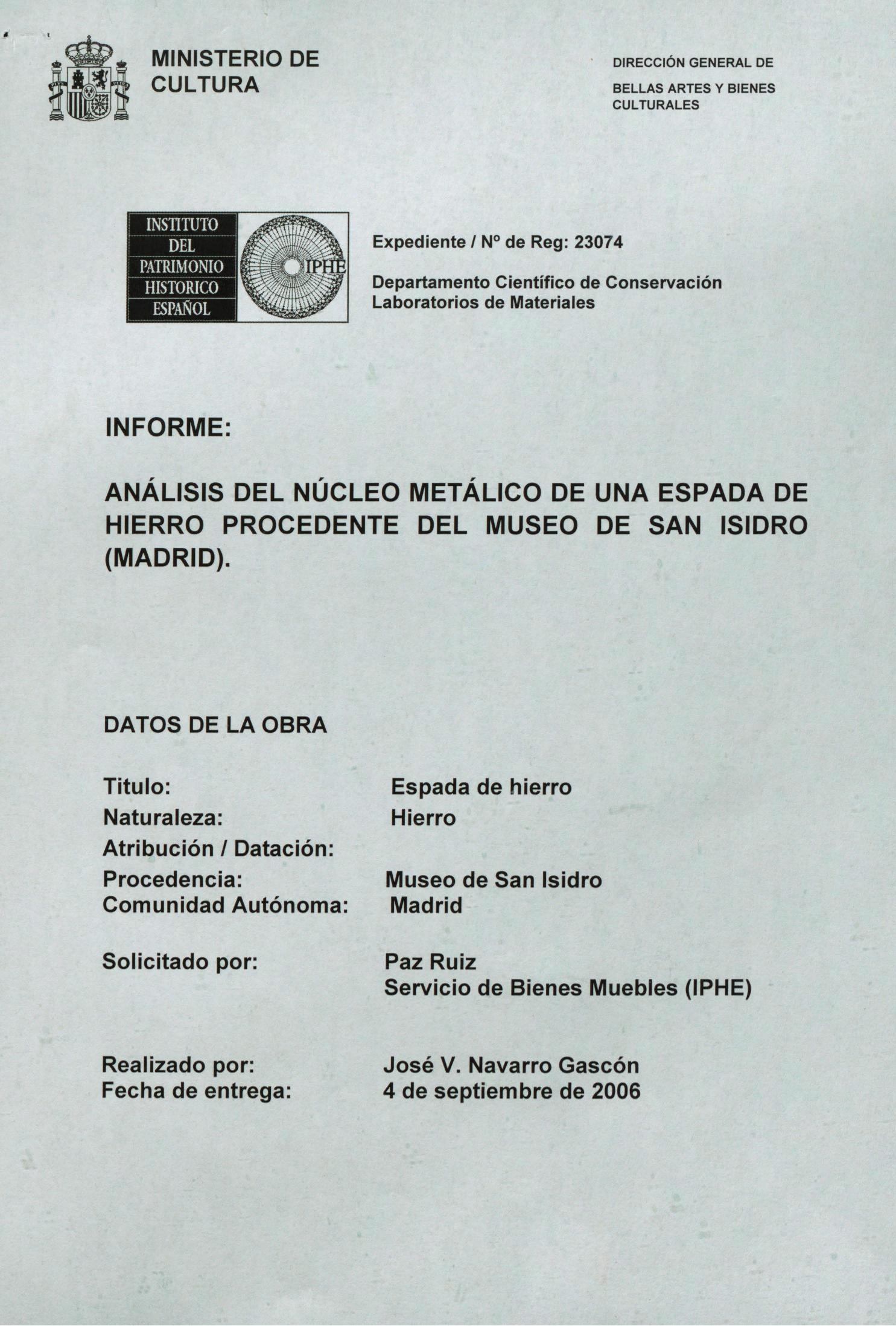 Restauración de una espada visigoda (espada de Daganzo) procedente del Museo de San Isidro de Madrid