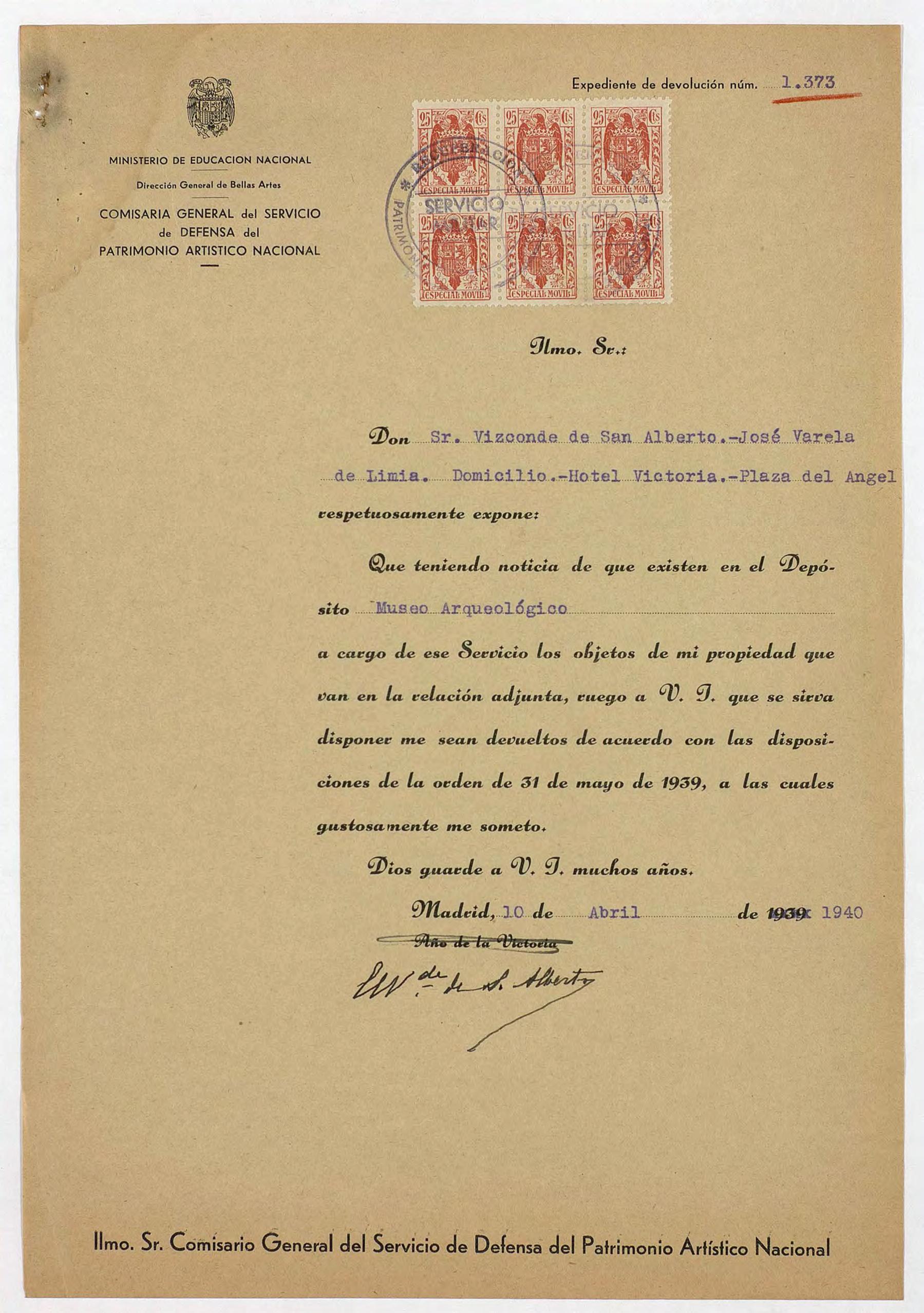Expediente de devolución de José Varela de Limia, vizconde de San Alberto