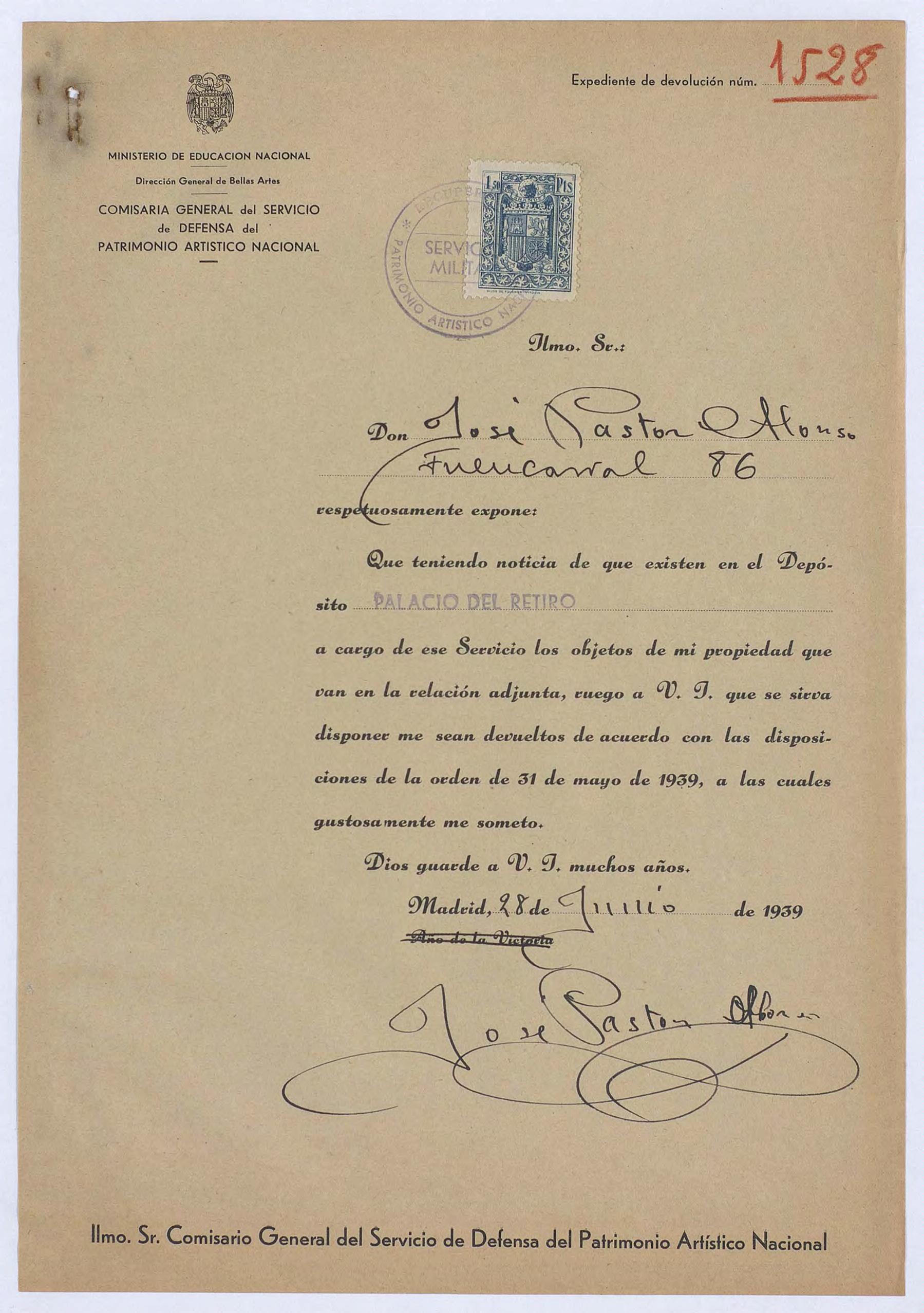 Expediente de devolución de José Pastor Alonso