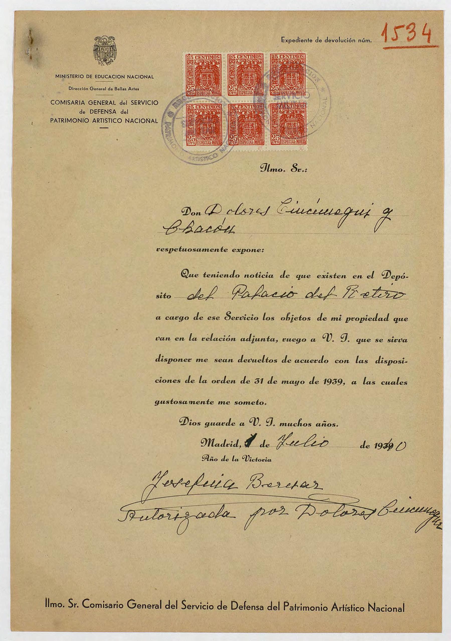Expediente de devolución de Dolores Cincúnegui Chacón