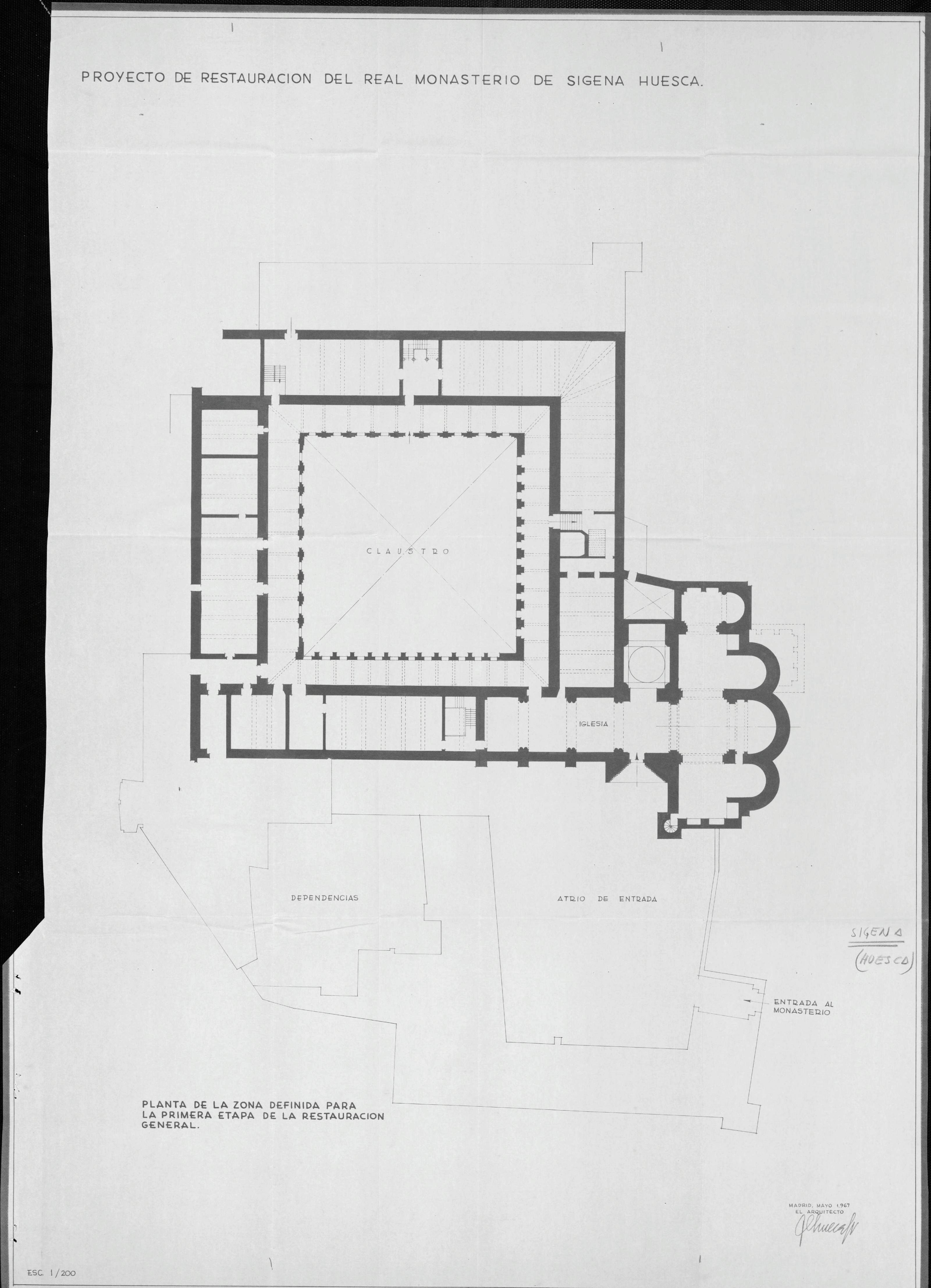 Real Monasterio de la Orden de San Juan de Jerusalen en Sigena (Huesca): Planta de la zona definida para la Primera Etapa de la Restauración General