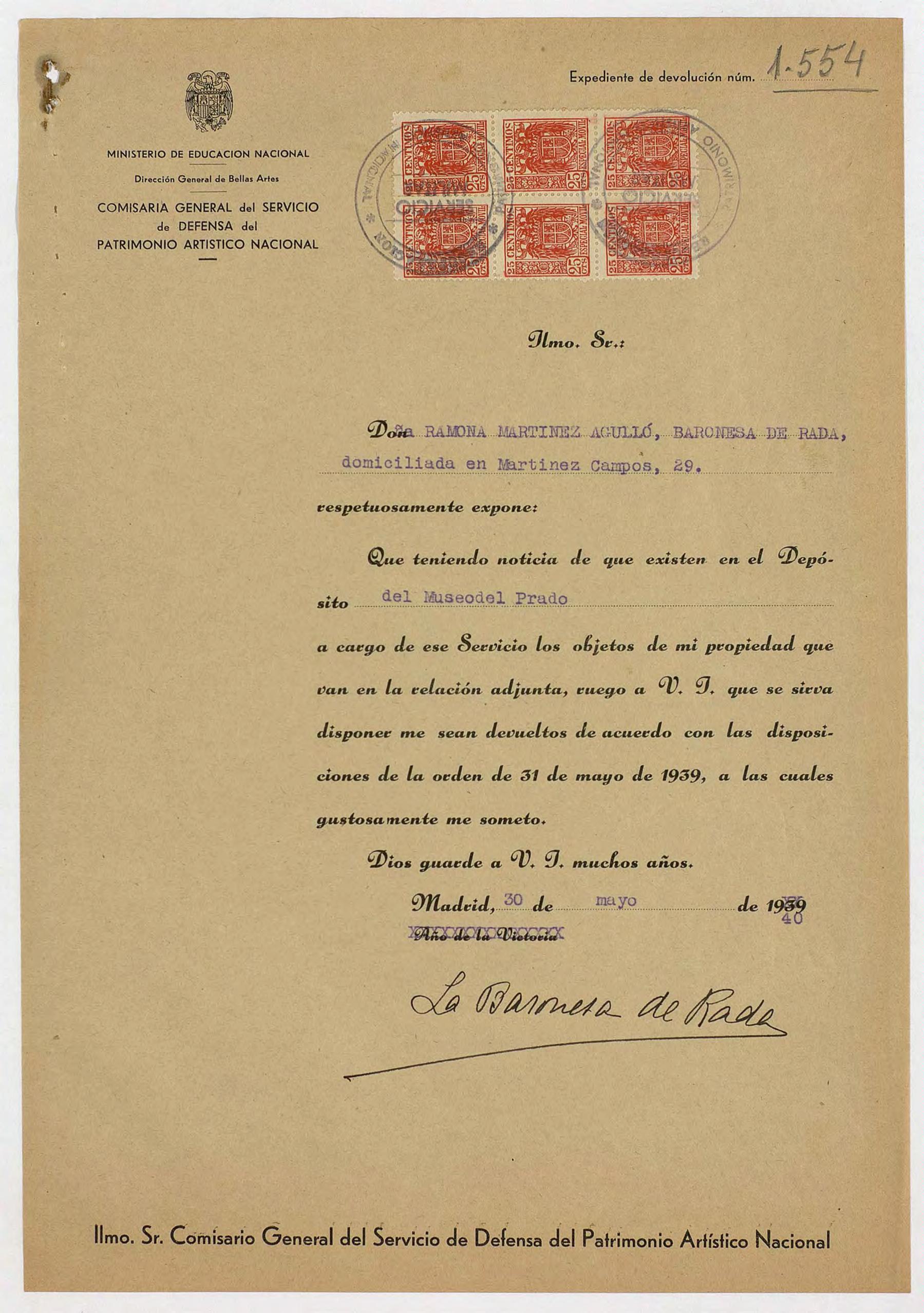 Expediente de devolución de Ramona Martínez Agulló, baronesa de Rada