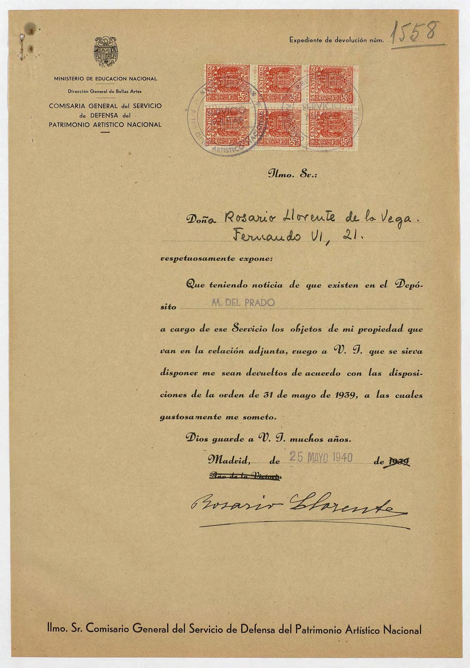 Expediente de devolución de Rosario Llorente de la Vega