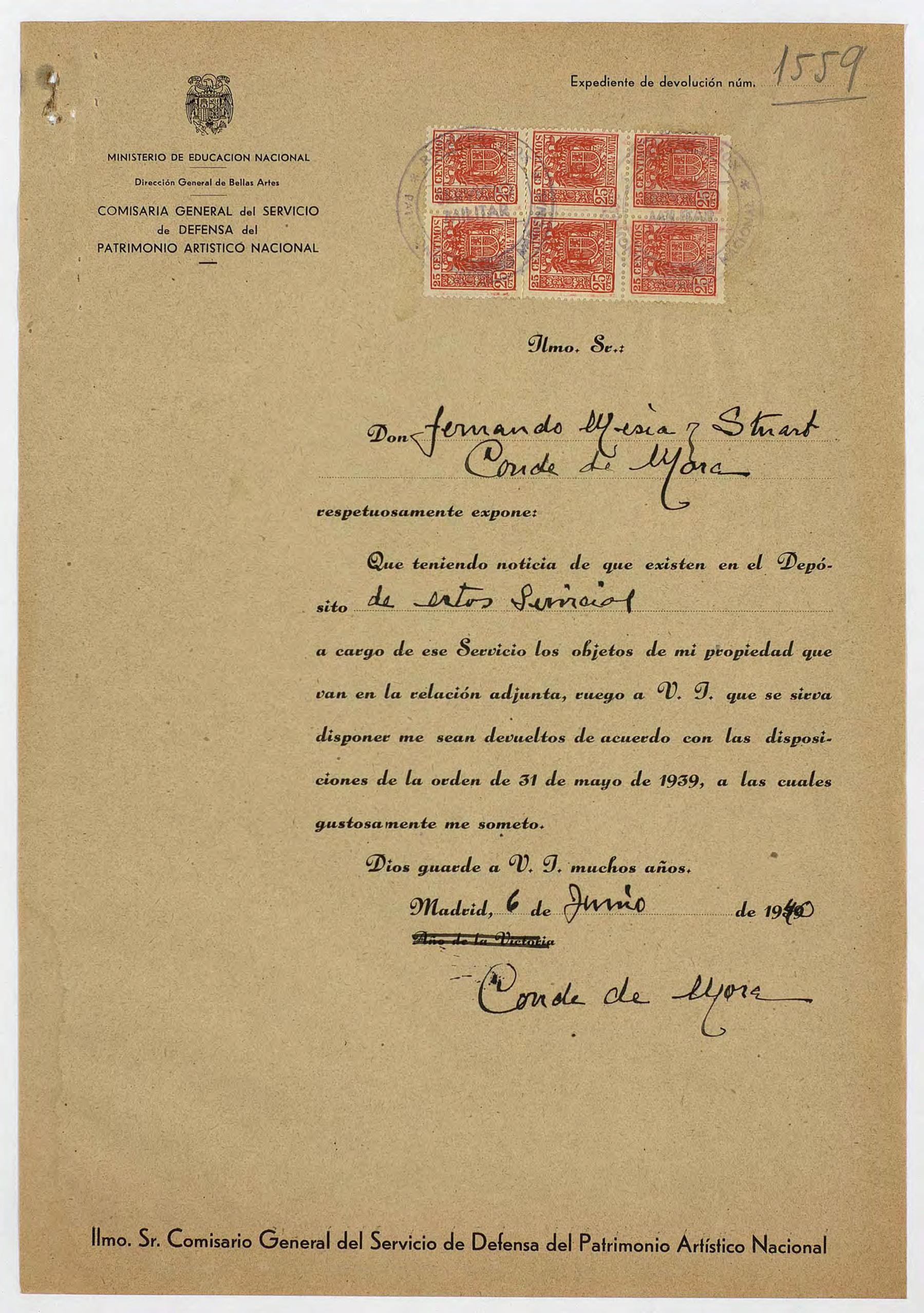 Expediente de devolución de Fernando Mesía y Stuart, conde de Mora