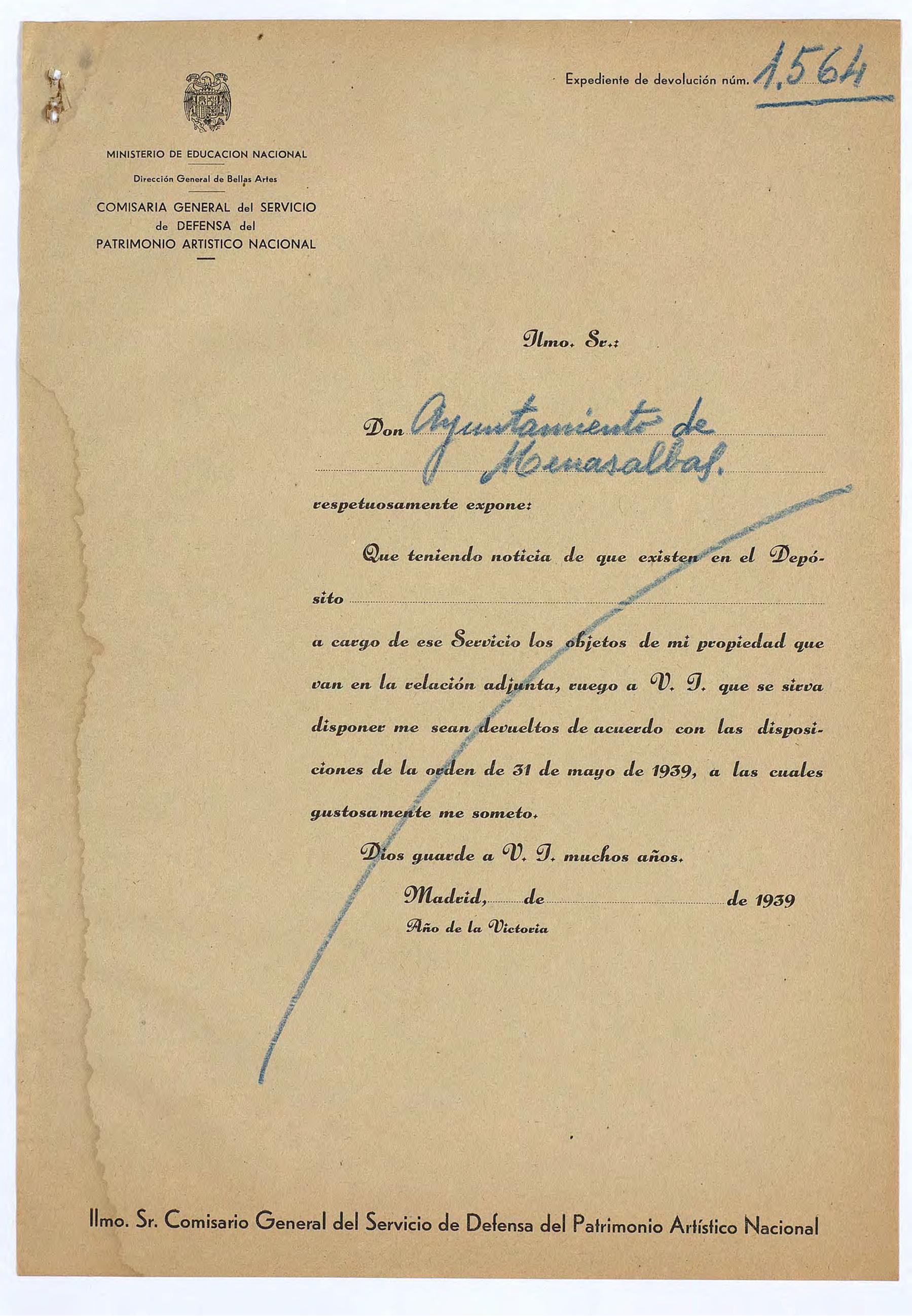 Expediente de devolución del Ayuntamiento de Menasalbas (Toledo)