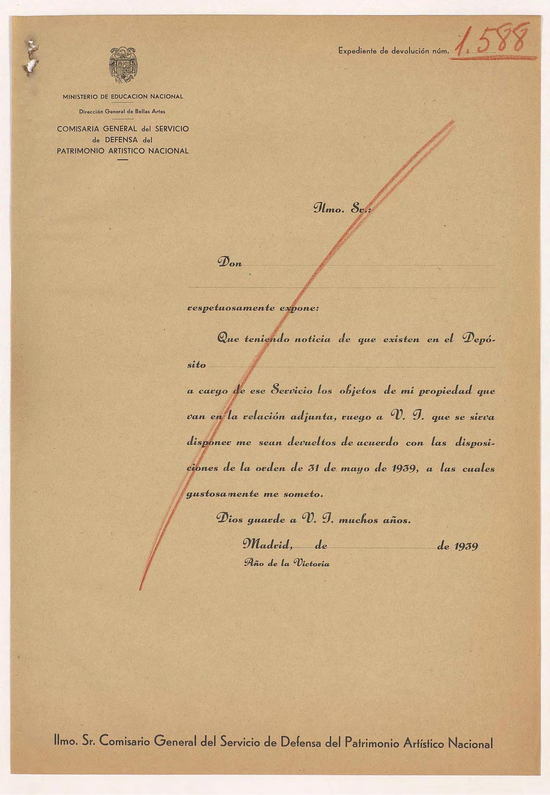 Expediente de devolución de la Comandancia de Obras y Fortificaciones de la Primera Región Militar de Madrid