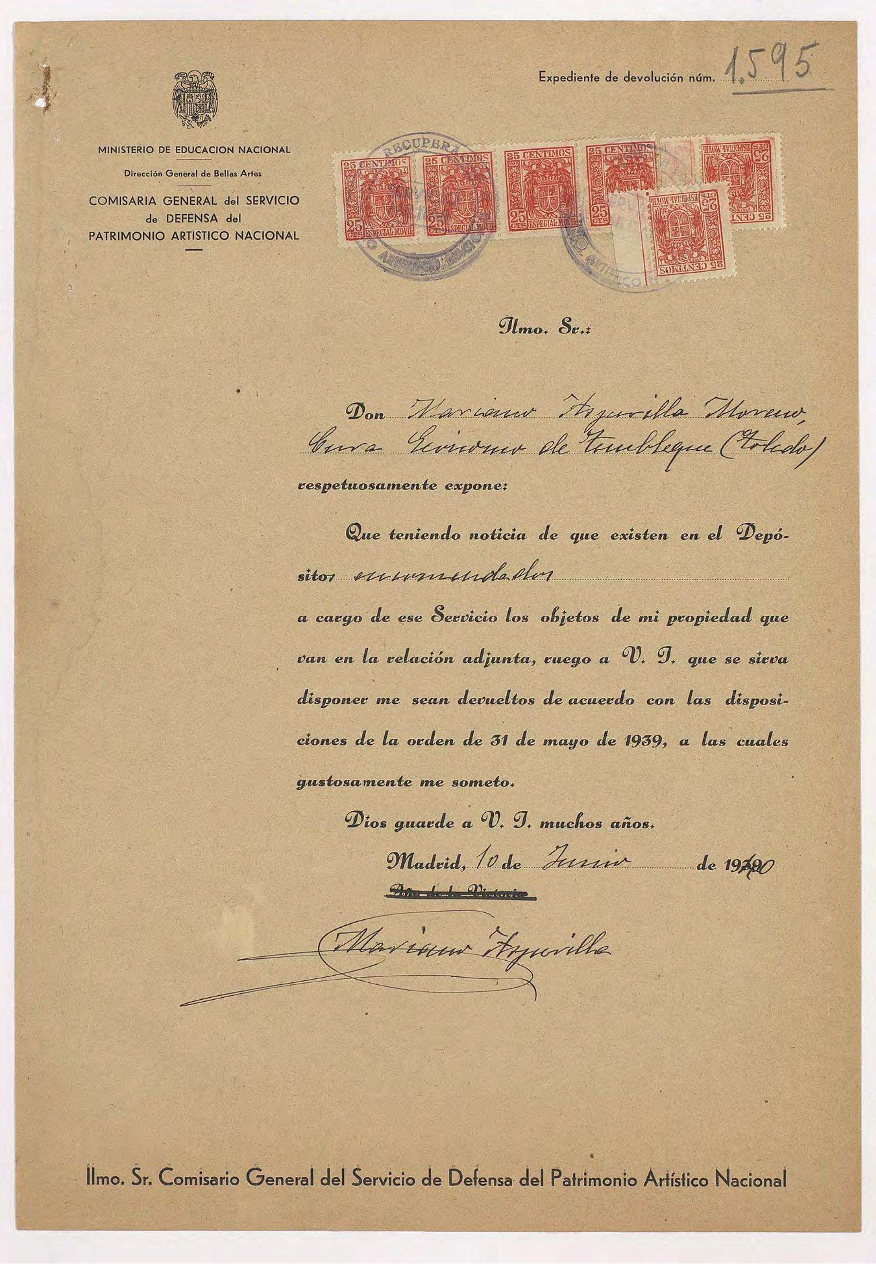 Expedientes de devolución de obras de arte
