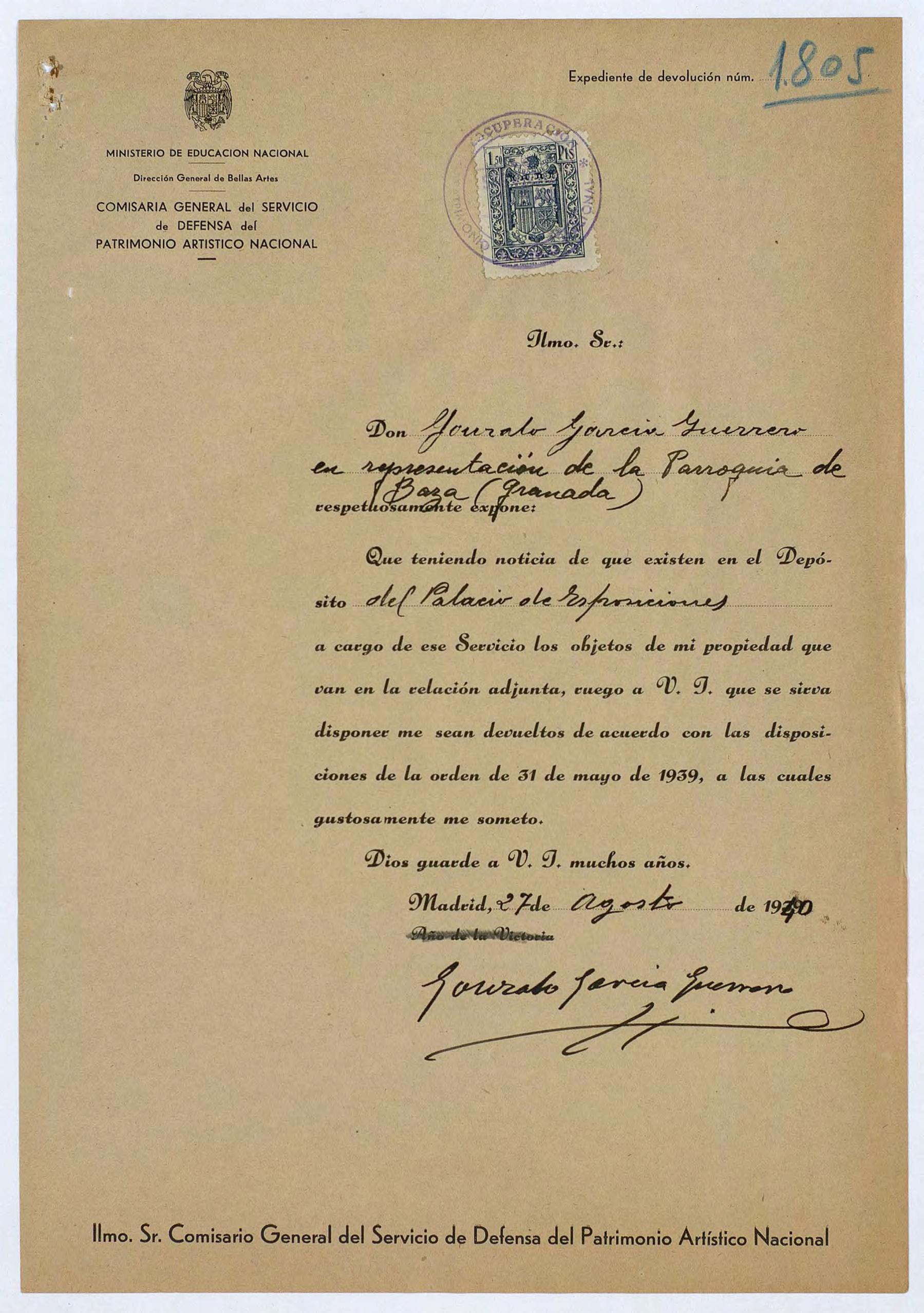 Expediente de devolución de la Parroquia de Santiago de Baza (Granada)