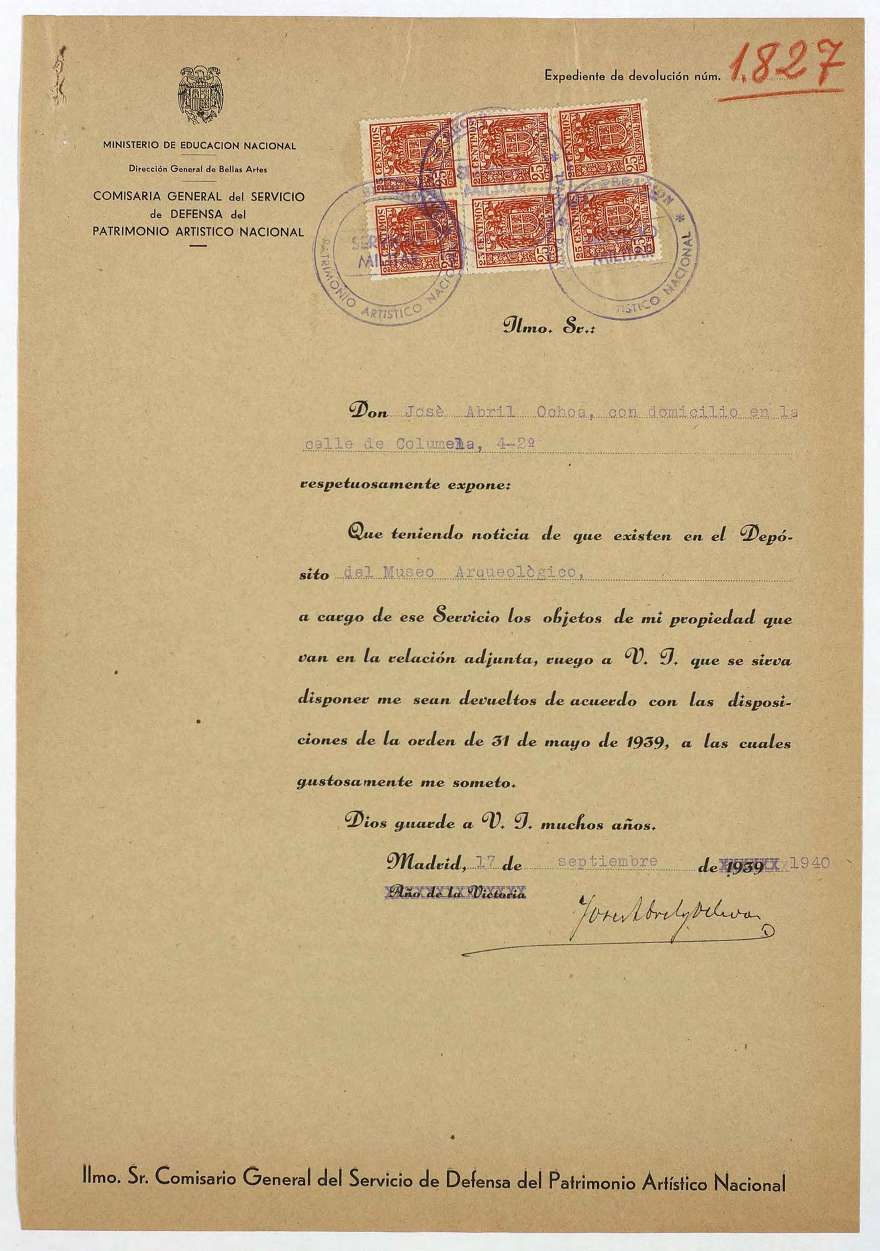 Expediente de devolución de José Abril Ochoa