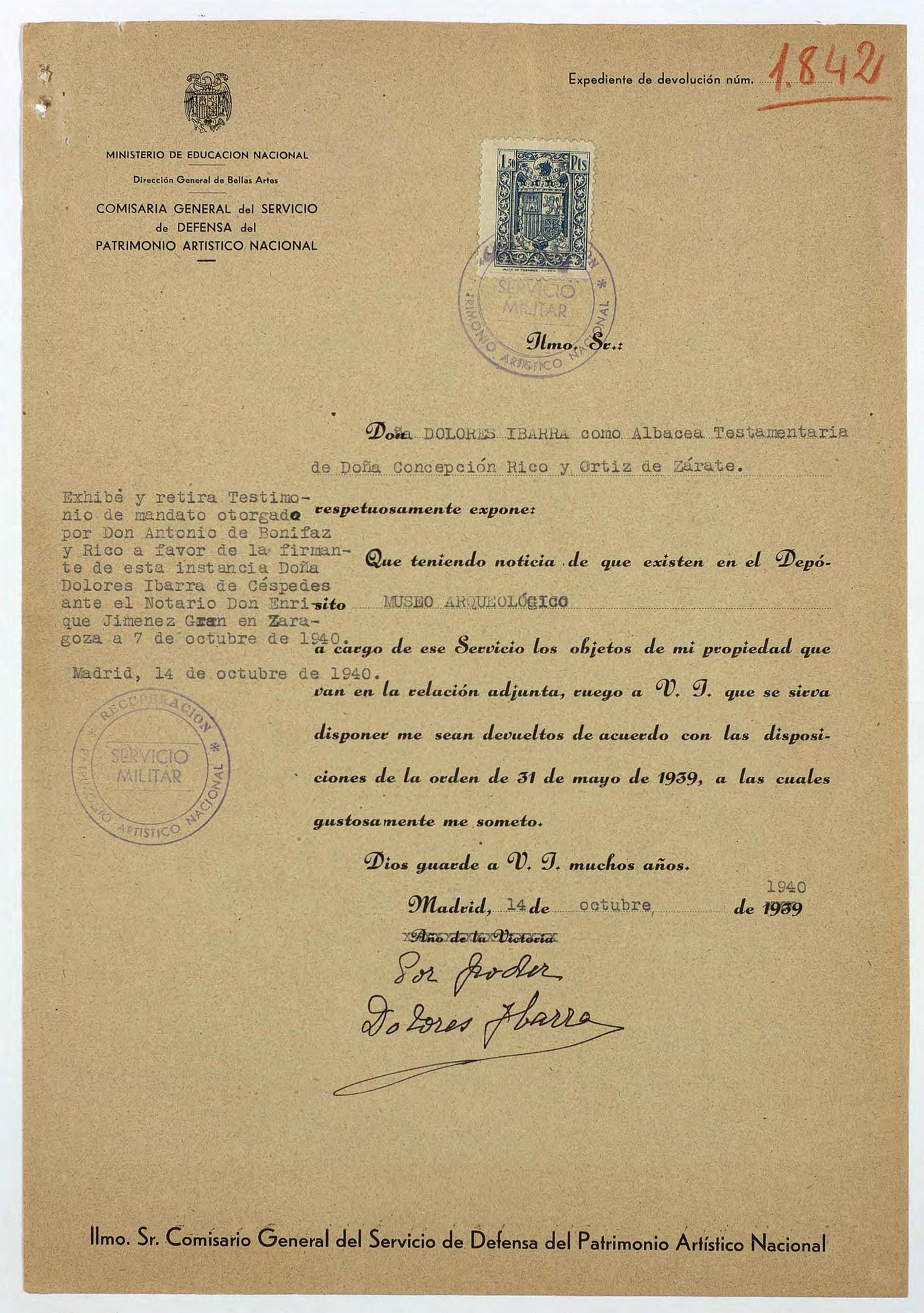 Expediente de devolución de Concepción Rico y Ortiz de Zárate