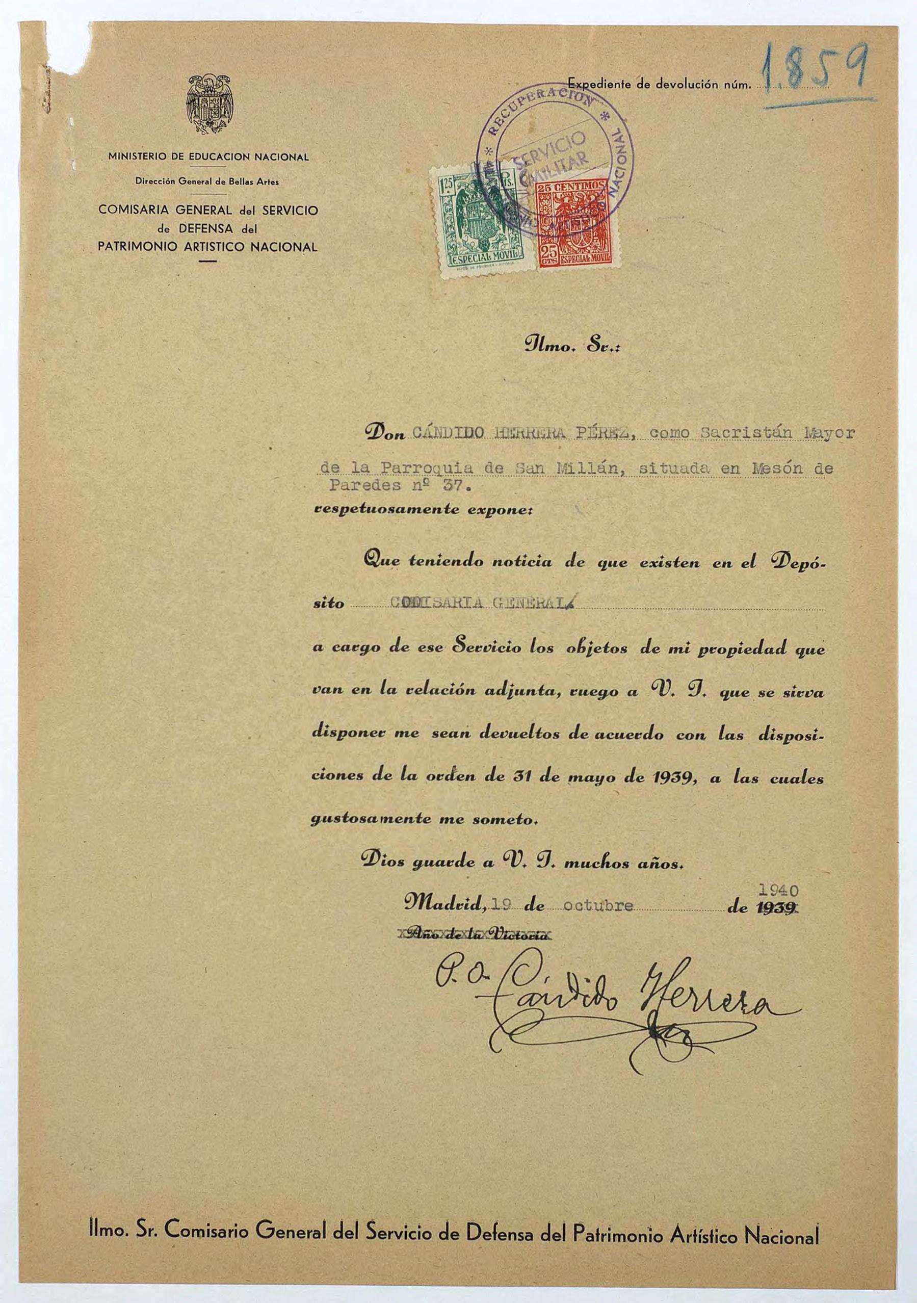 Expediente de devolución de la Parroquia de San Millán de Madrid