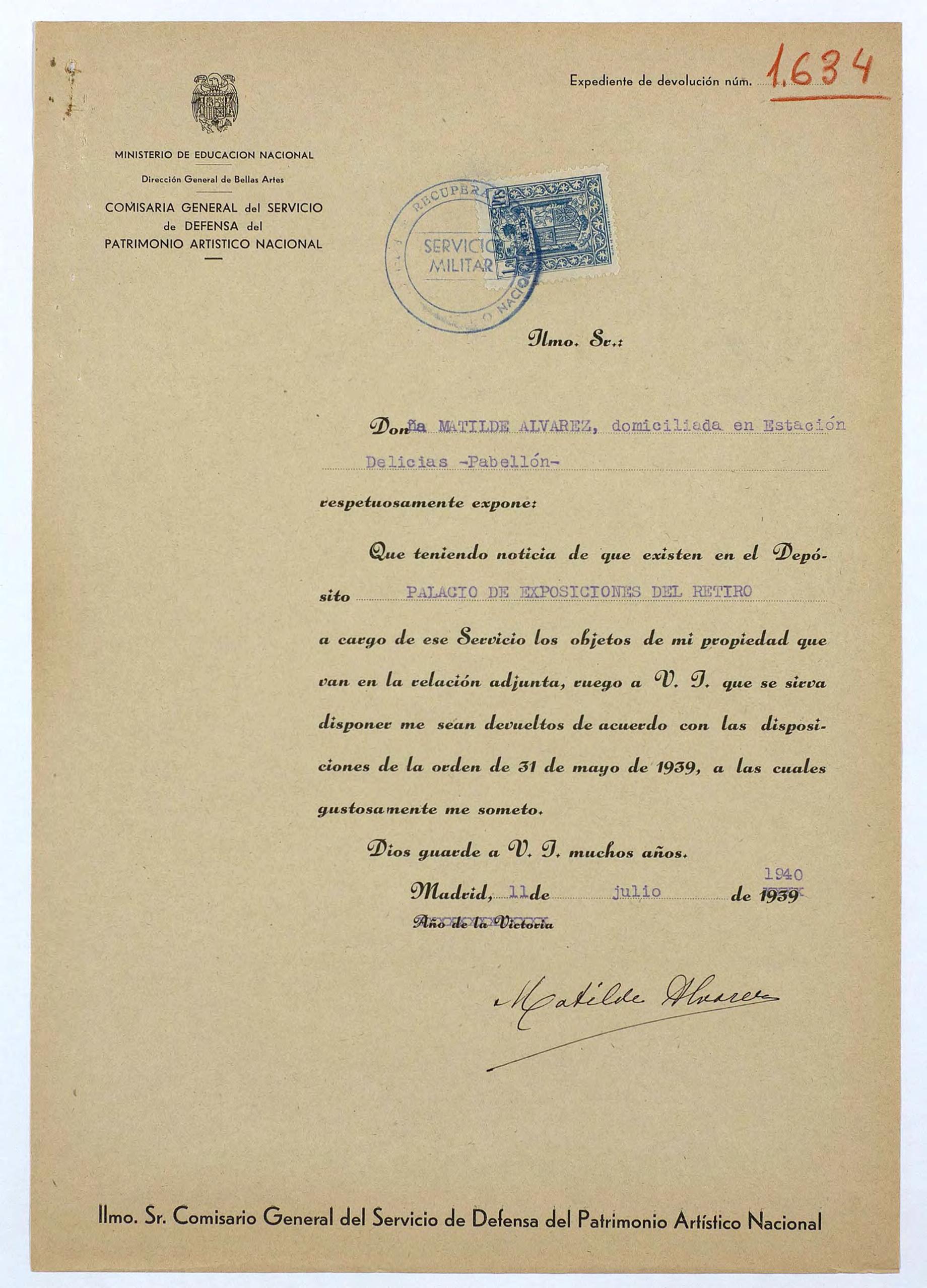 Expediente de devolución de Matilde Álvarez