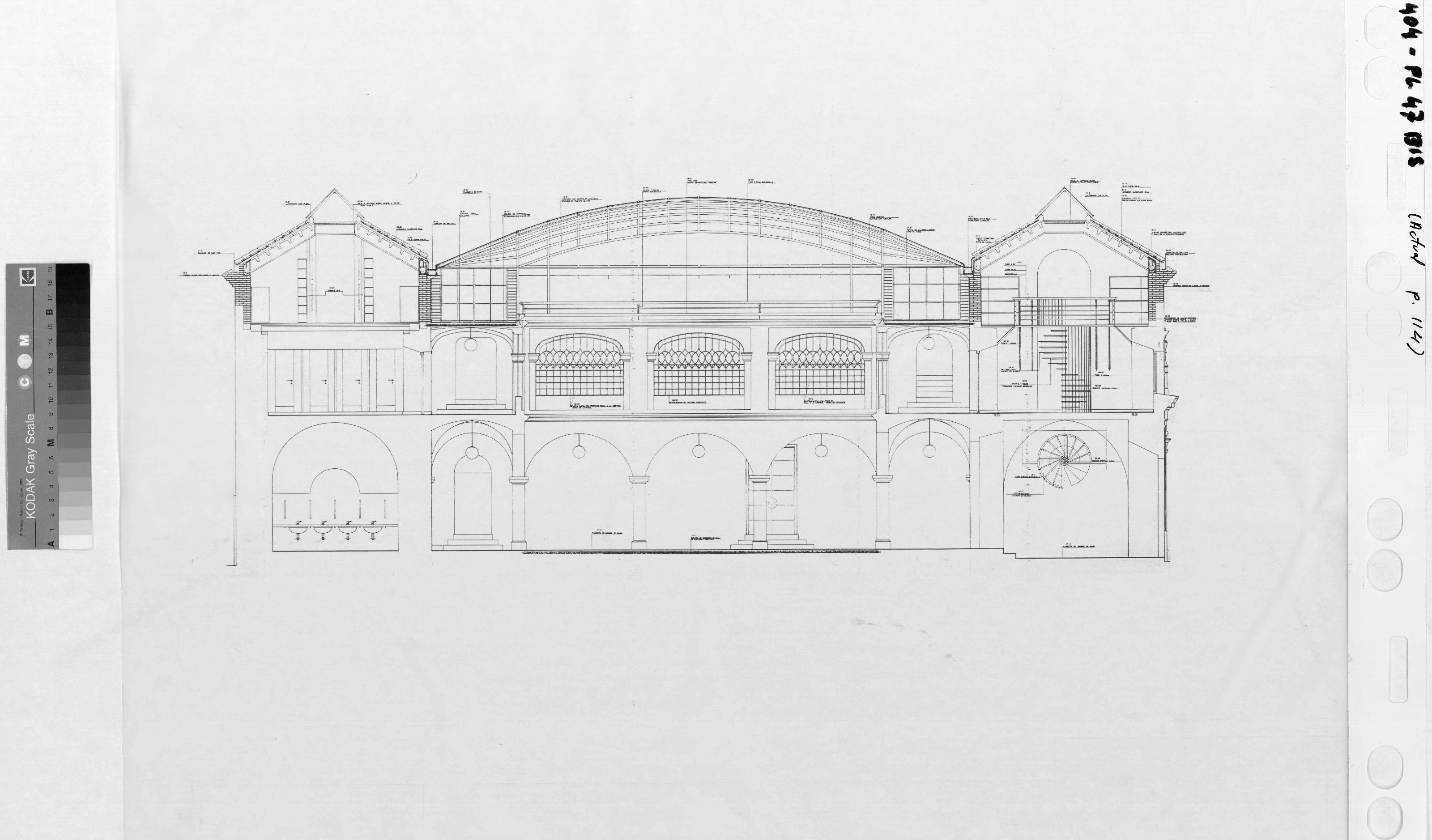 ASAMBLEA DE EXTREMADURA PROYECTO DE REHABILITACIÓN DEL ANTIGUO HOSPITAL DE S. JUAN DE DIOS PARA SEDE DE LA ASAMBLEA: SECCION Bastante detallado con alguna nota, es copia reducida y no se leen bien las anotaciones. Sin firmar