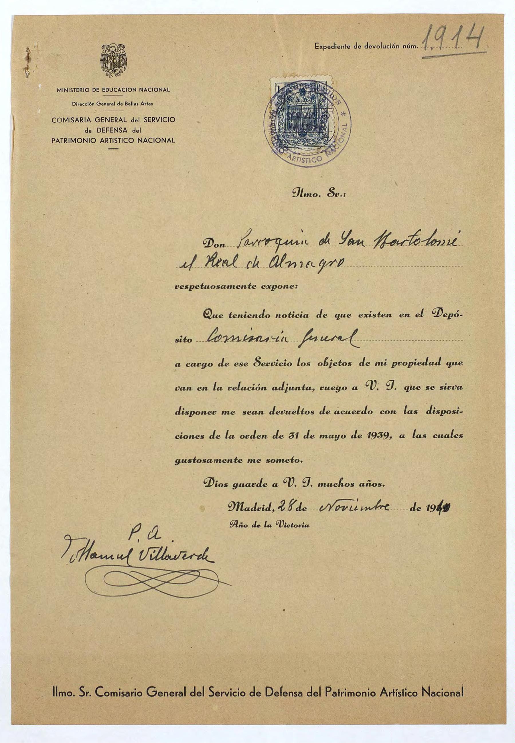 Expediente de devolución de la Parroquia de San Bartolomé el Real de Almagro (Ciudad Real)