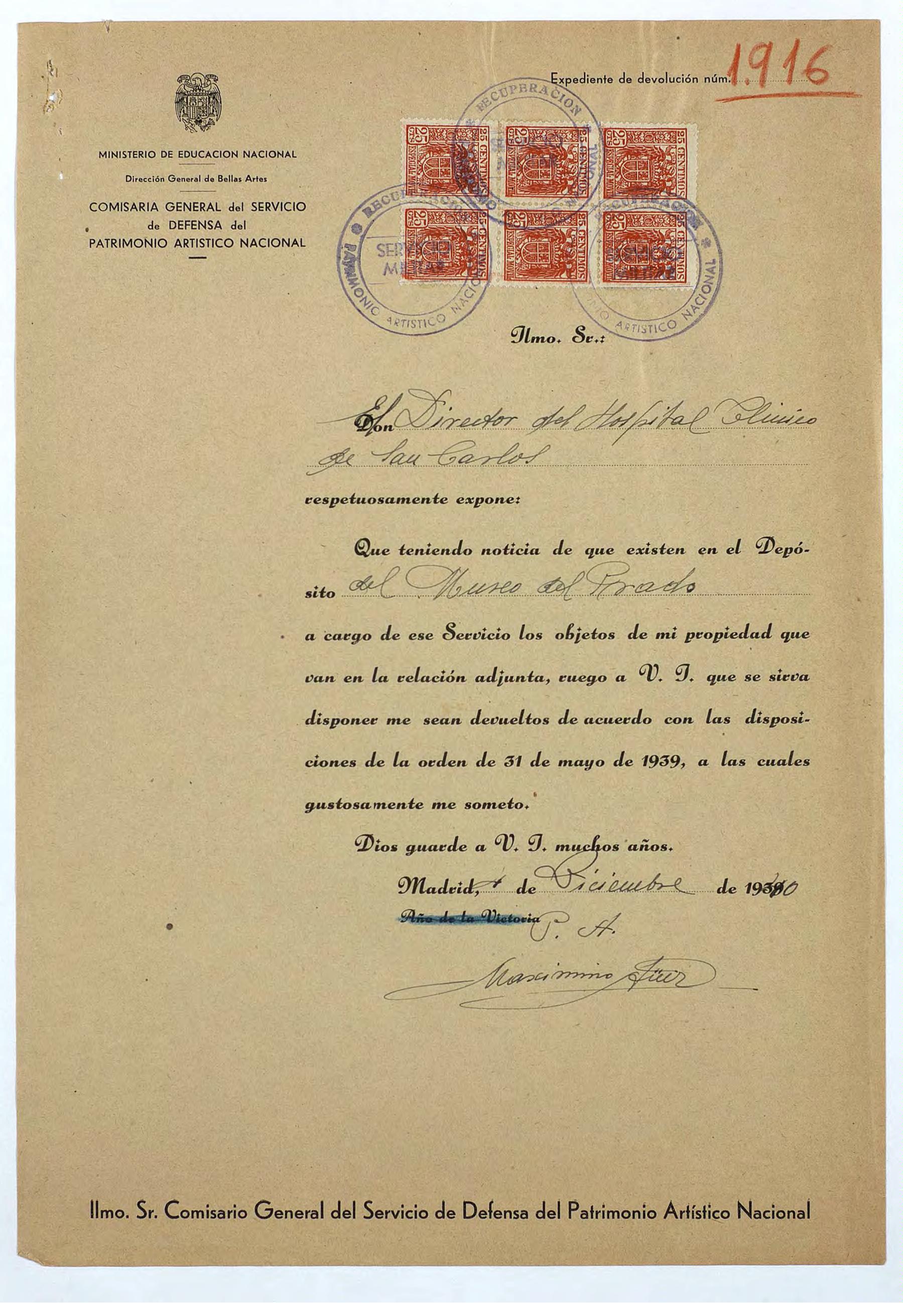 Expediente de devolución del Hospital Clínico de San Carlos de Madrid
