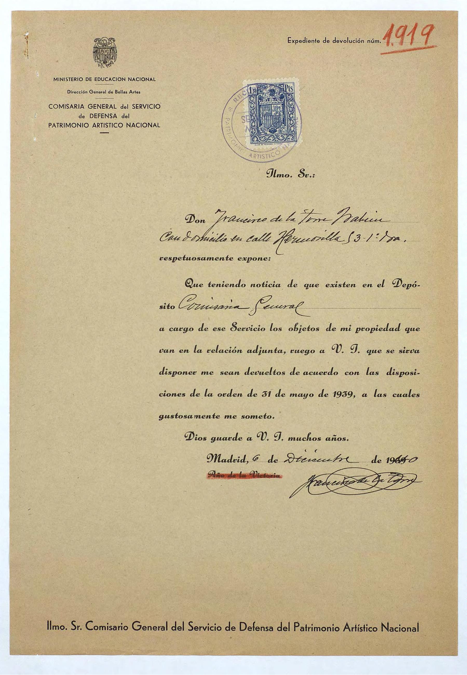 Expediente de devolución de Francisco de la Torre