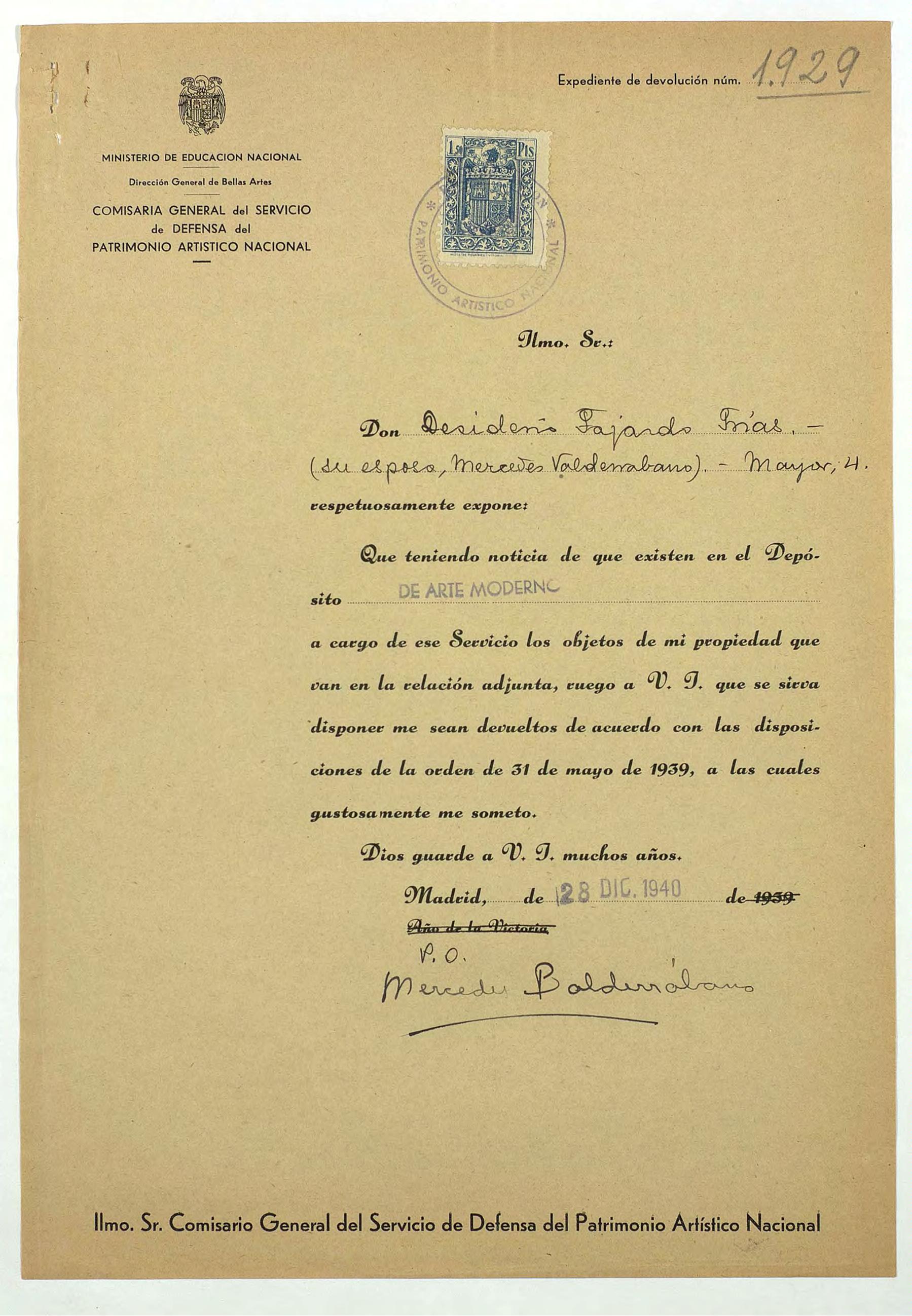 Expedientes de devolución de obras de arte