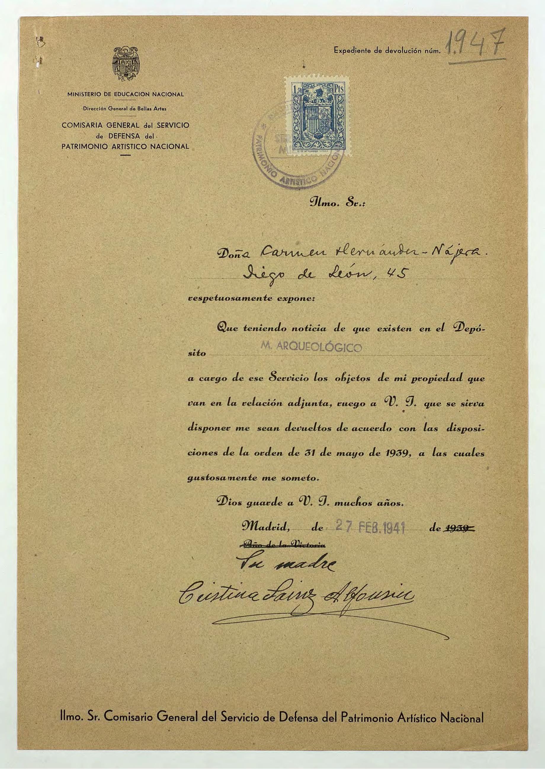 Expediente de devolución de Carmen Hernández-Nájera y Sainz