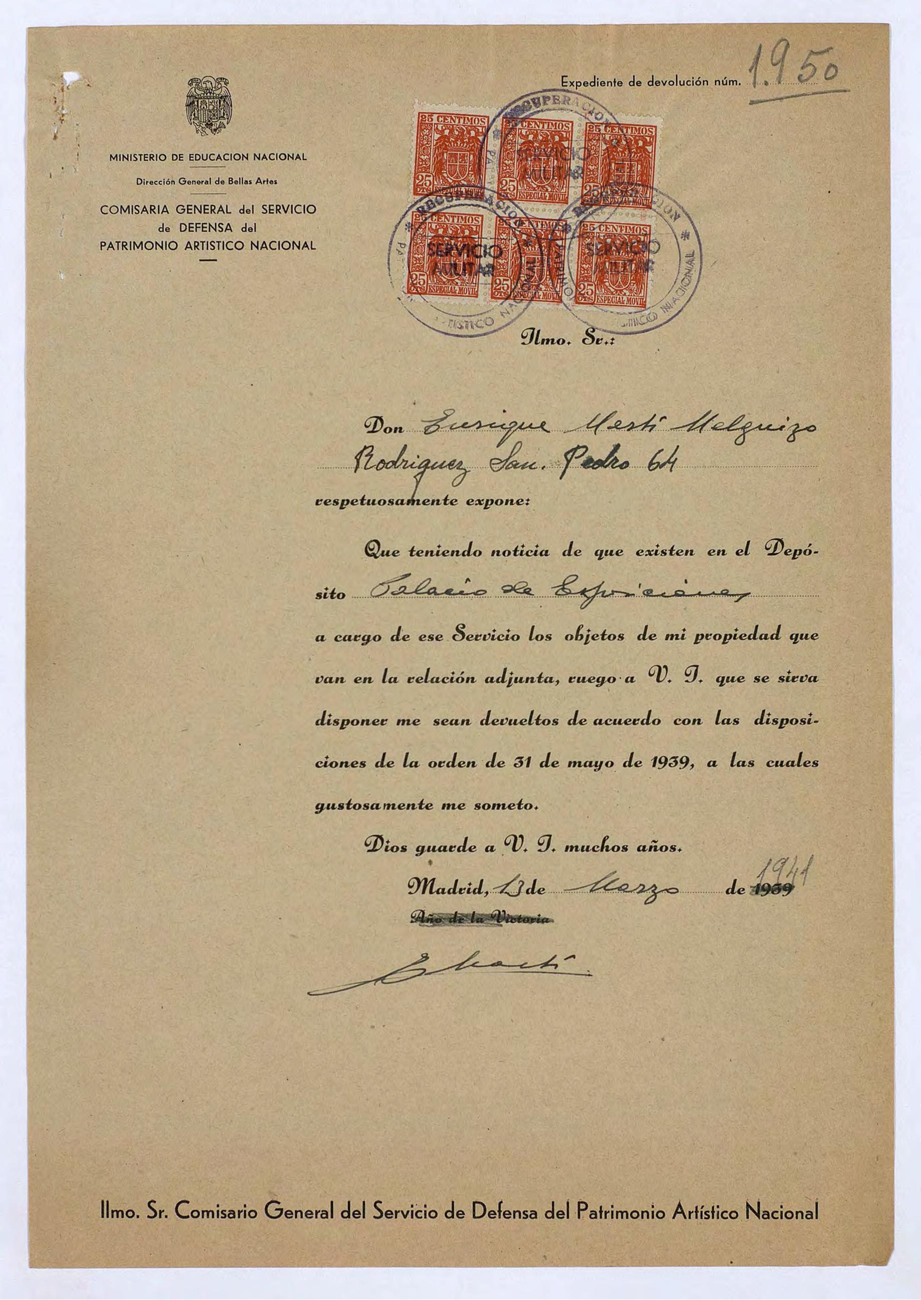 Expediente de devolución de Enrique Martí Melguizo