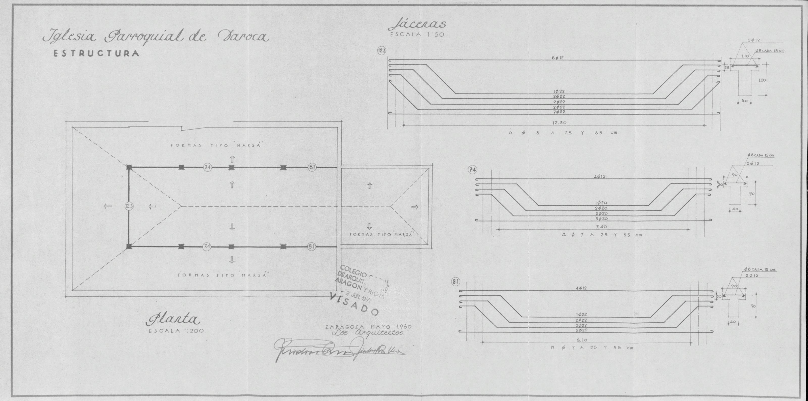 Iglesia Parroquial de Daroca (Zaragoza): Estructura : Planta y Jacenas