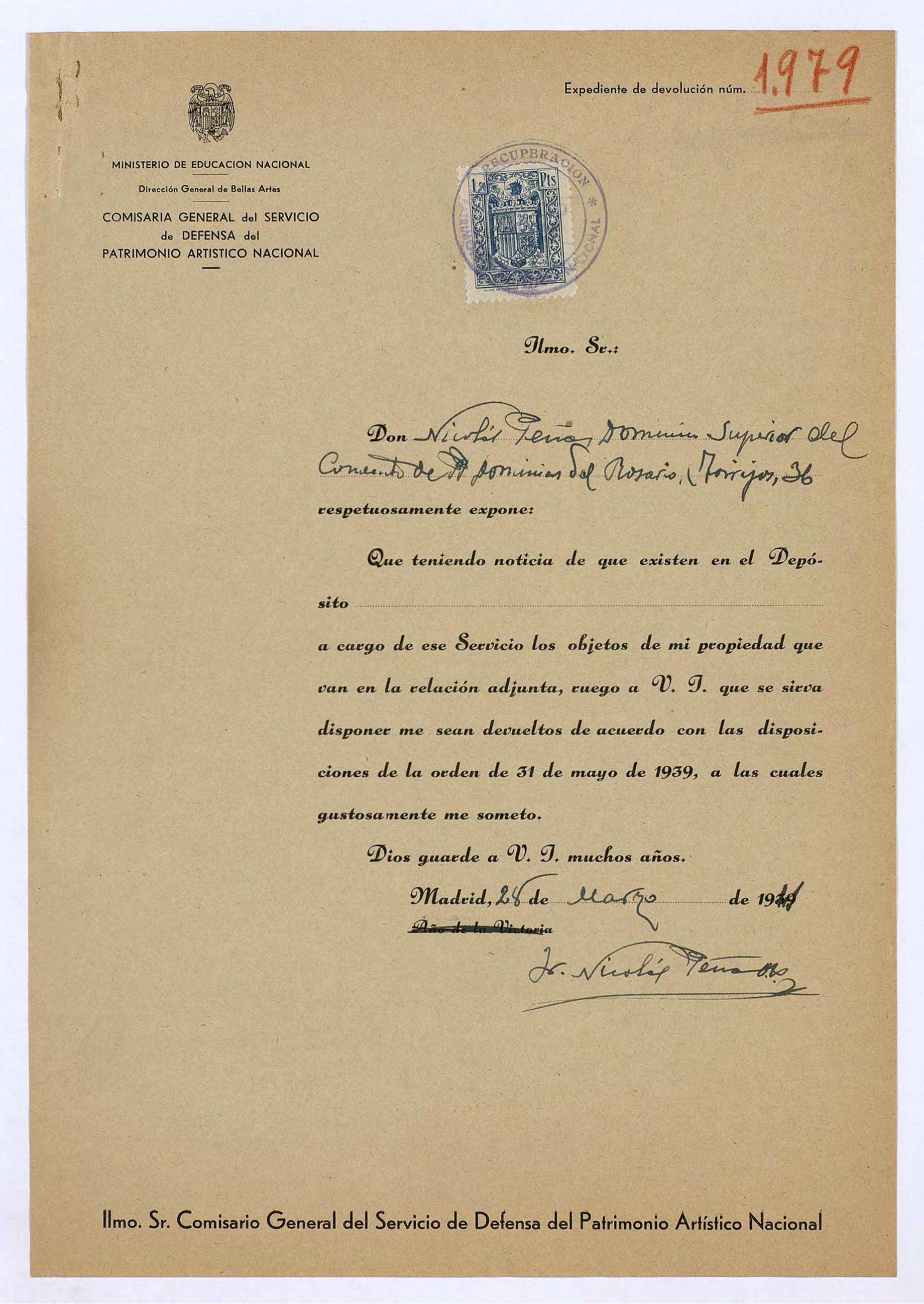 Expediente de devolución del Convento de Padres Dominicos del Rosario