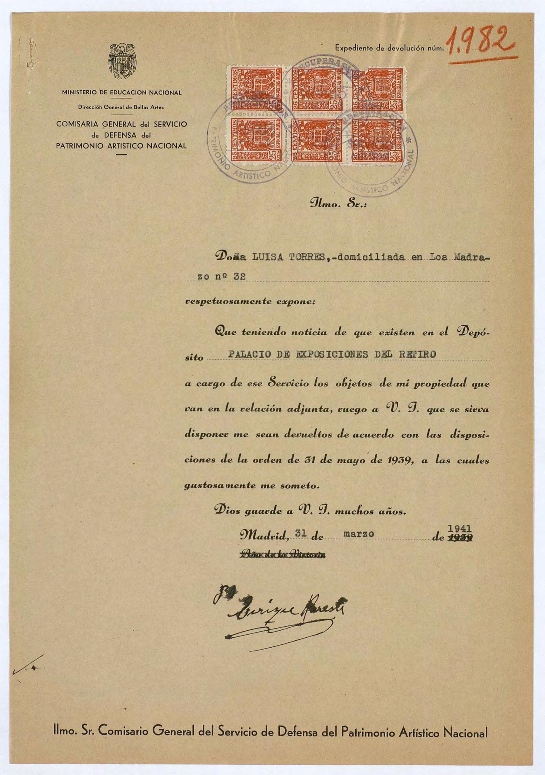 Expediente de devolución de Luisa Torres, viuda de Granda
