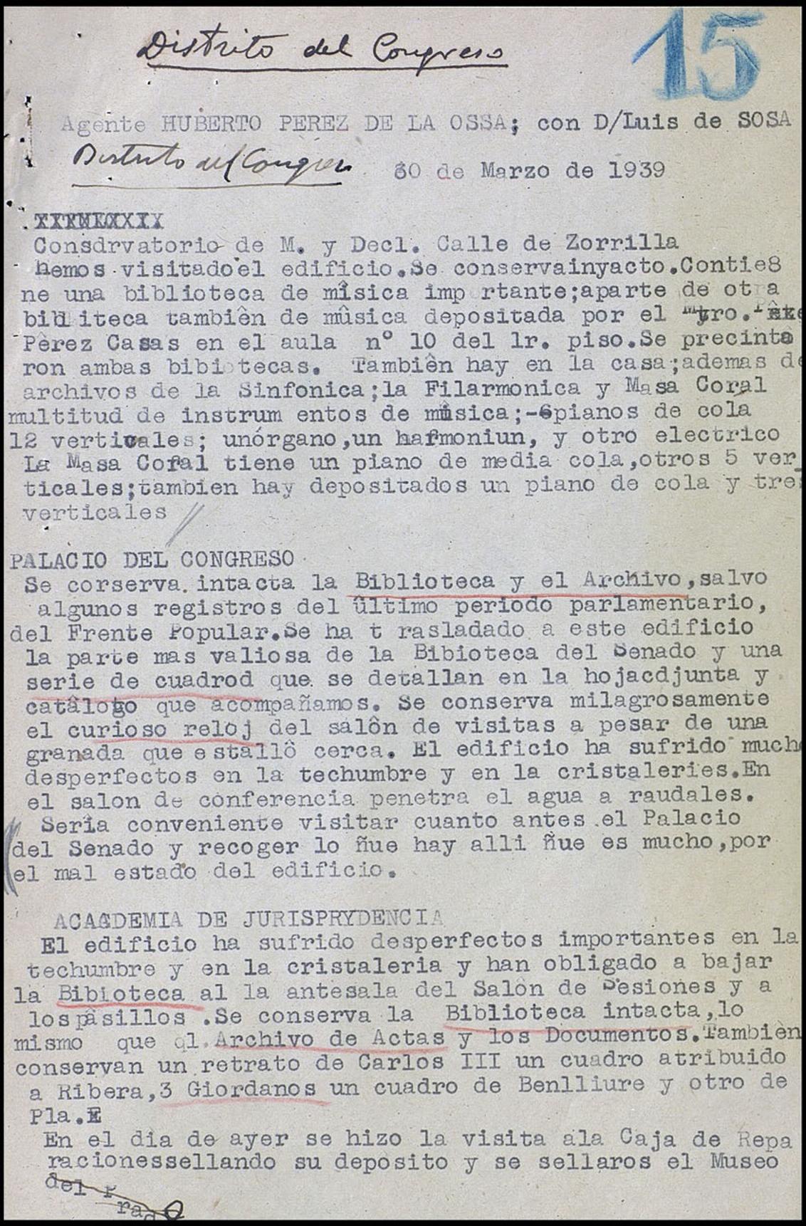 Visitas realizadas por los agentes al Conservatorio, Palacio del Congreso y Academia de Jurisprudencia