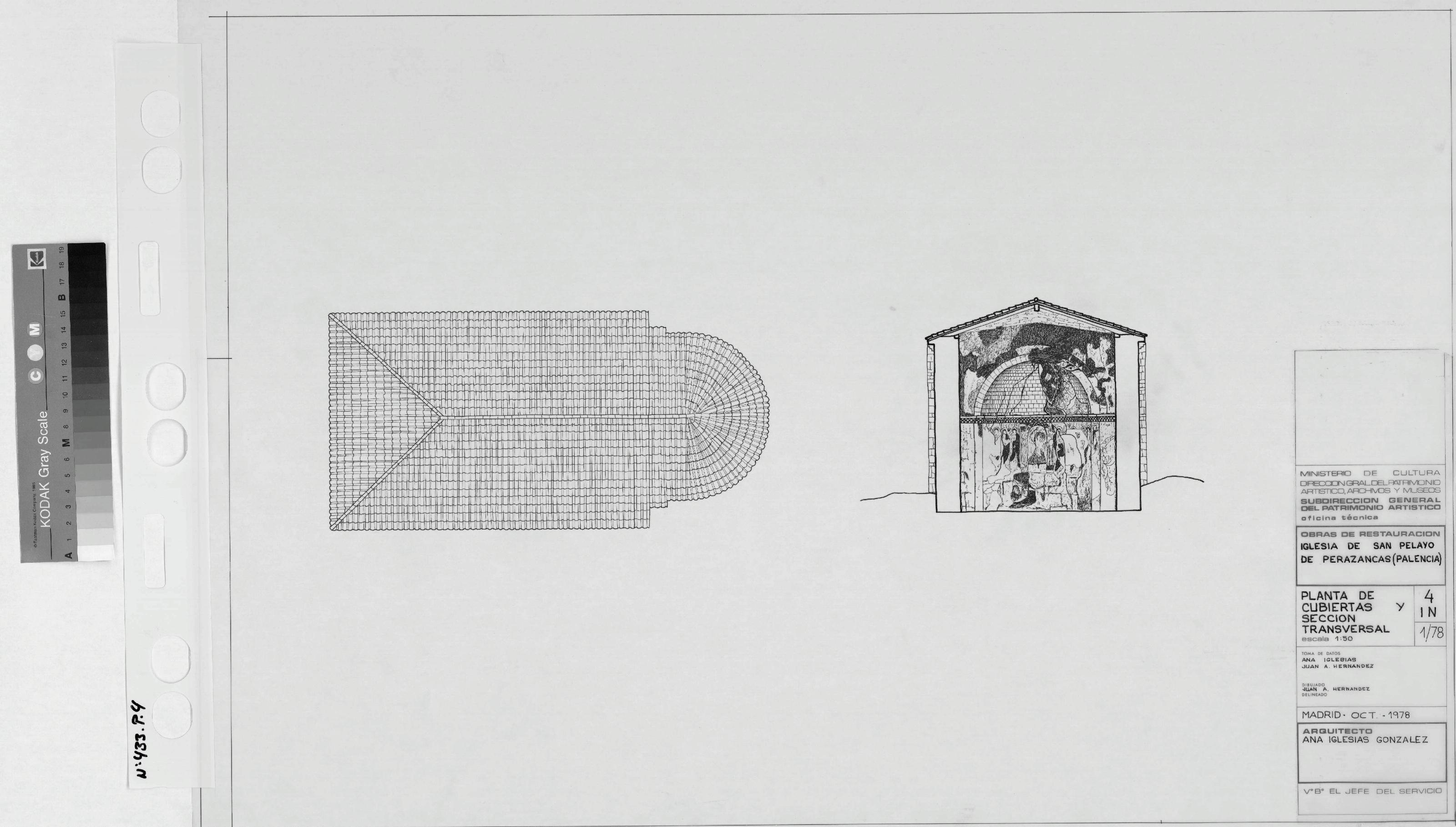 IGLESIA DE SAN PELAYO DE PERAZANCAS: PLANTA DE CUBIERTAS; SECCION TRANSVERSAL